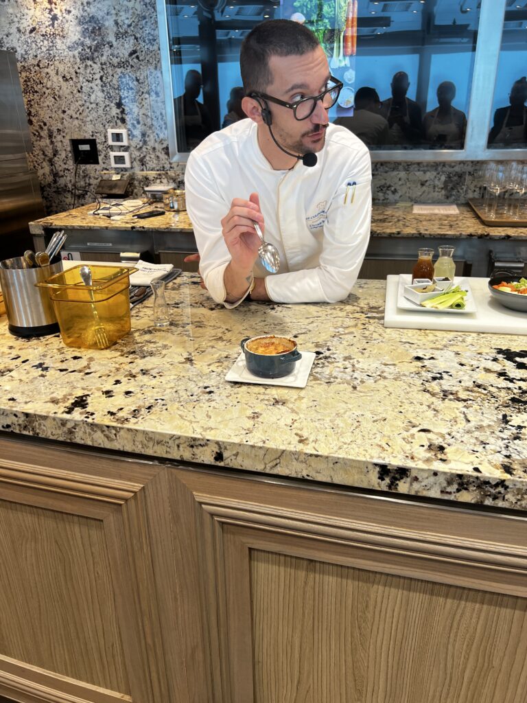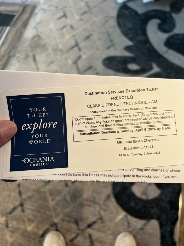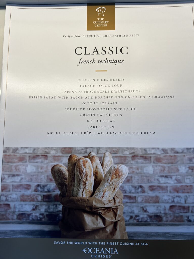 After breakfast we headed up to the culinary center for our cooking class. The class today was called Classic French Technique. Another fun class and learned a few new things.