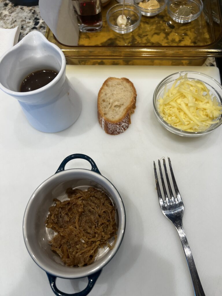 Our French Onion Soup. This was VERY easy to make but of course the caramelized onions had been prepared for us.