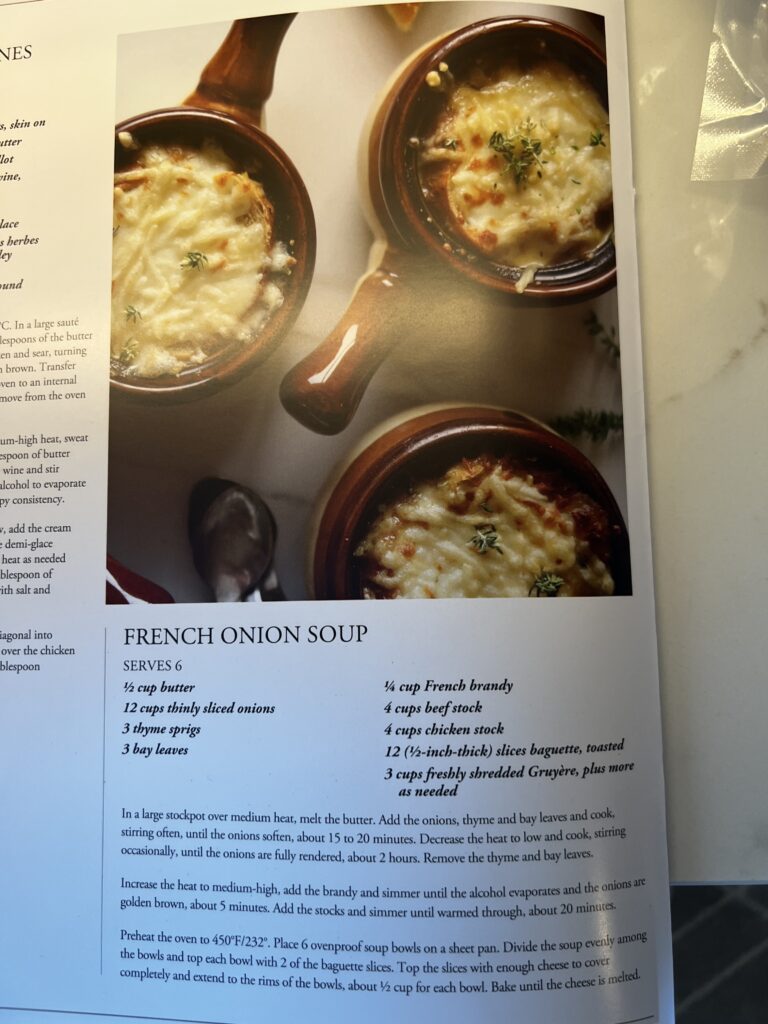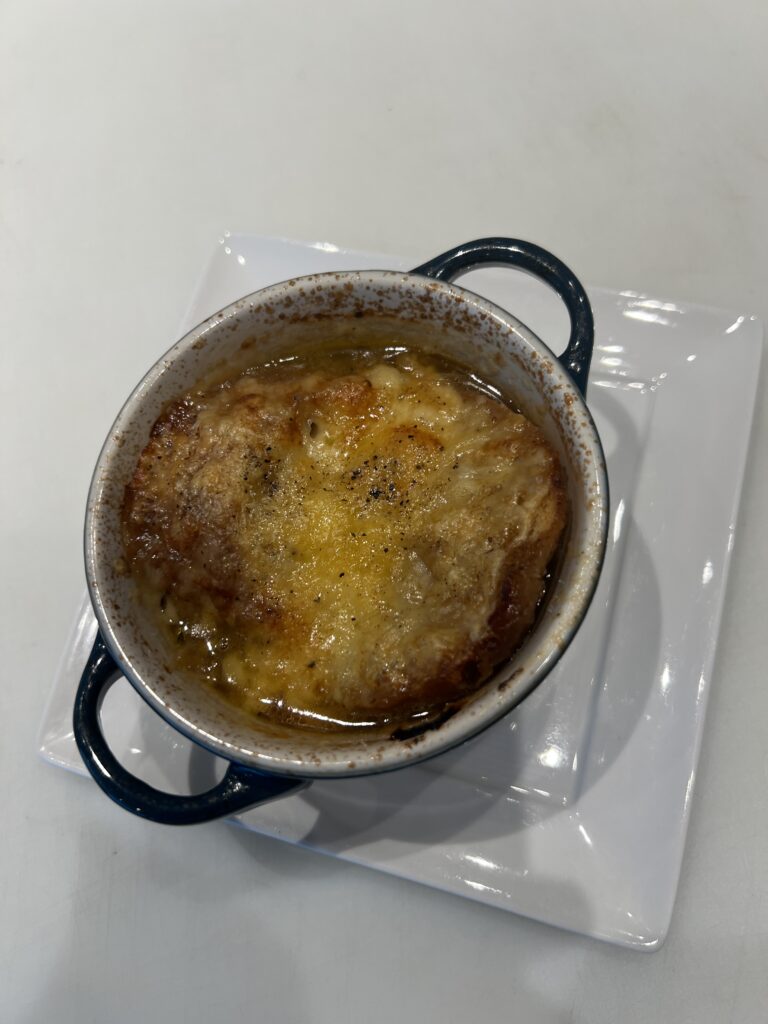 The three things we cooked today were: French Onion Soup, Gratin Dauphinois and Bistro Steak