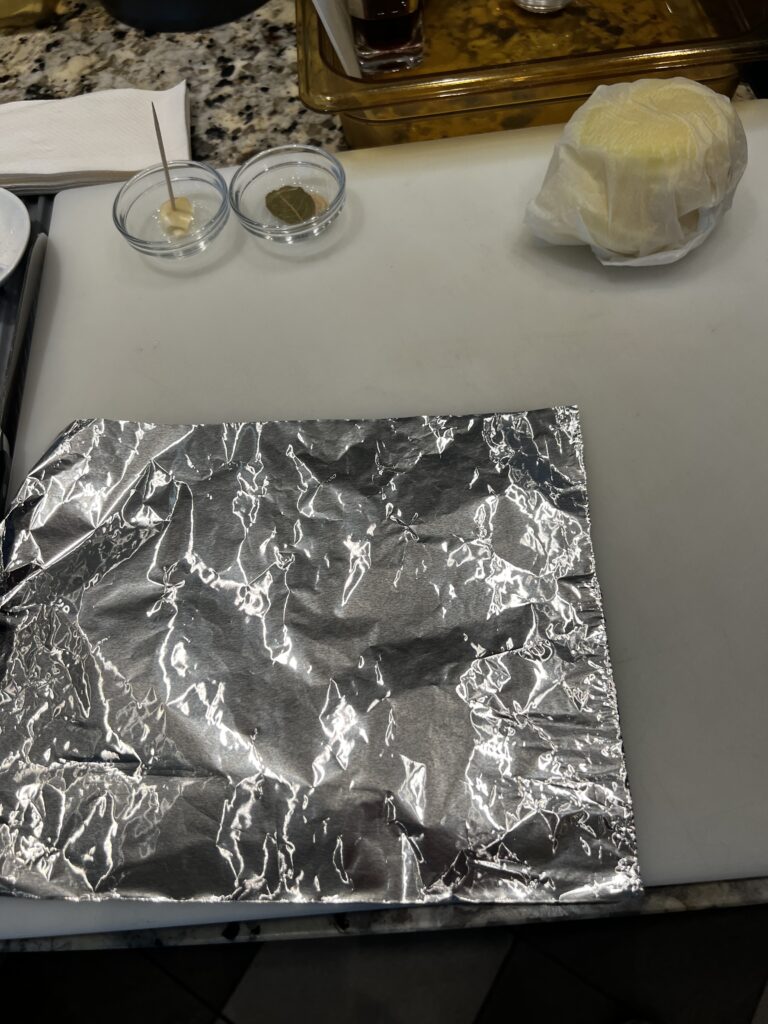 To save space in the ship’s culinary center there are no pot covers, so we use aluminum foil as a pot cover
