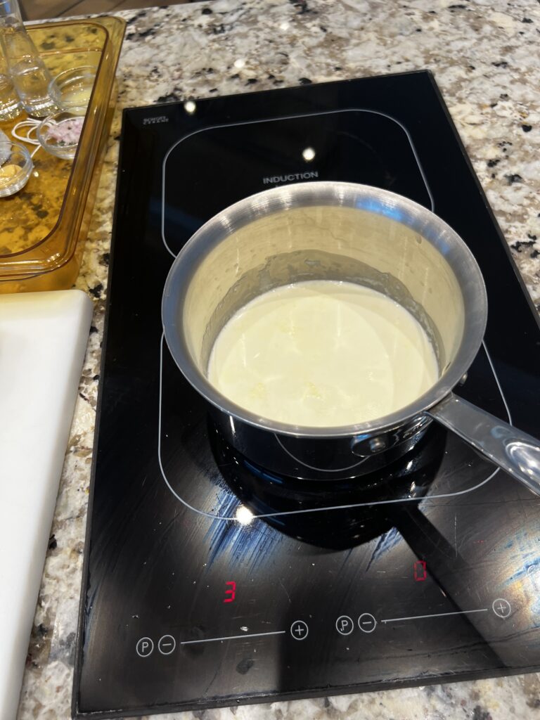 Receiving instruction from Chef Daniel. You can see us in the reflection of the screen. Proper students front and center and responding Yes Chef!!! I am expecting the same response when I get home, and start cooking and have a question 🙂