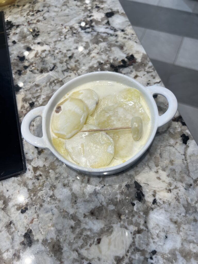 Short video of Chef Daniel giving instruction about the onion soup. I can only upload videos of 4 seconds and that is not all the time, sometimes I get lucky. Disappointing as I have two other videos to upload from the class but after trying 5 times for each video I gave up.