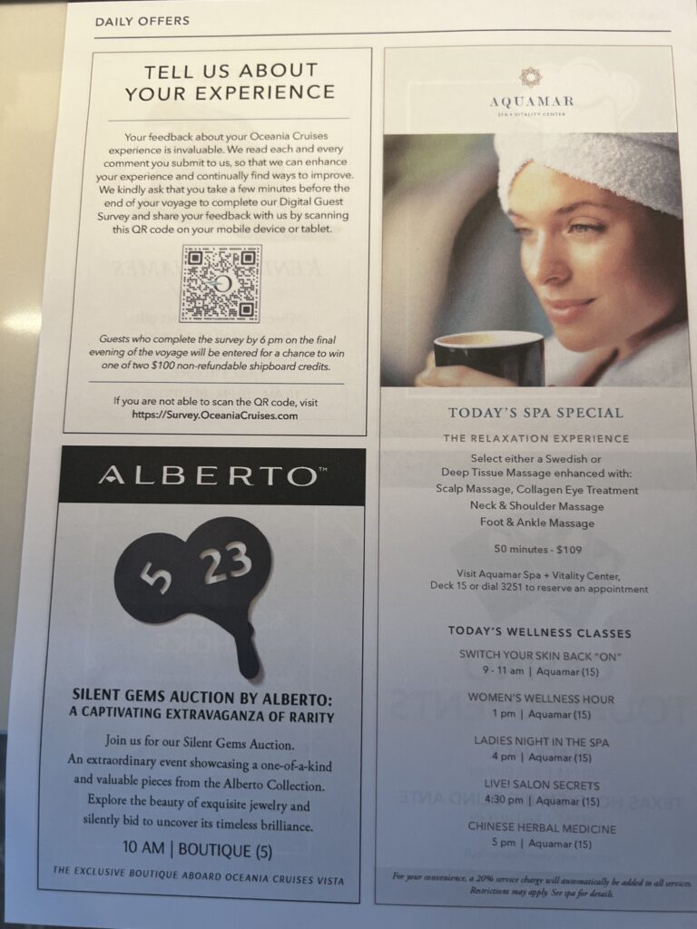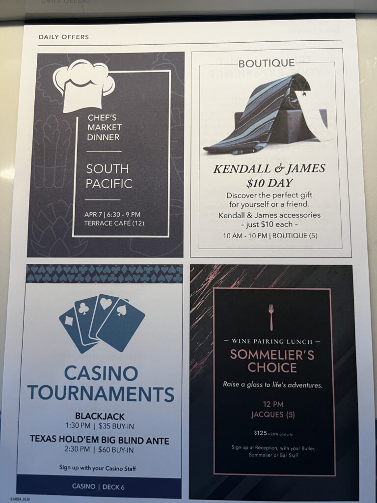 Tomorrow is another sea day and also our 4th anniversary. We are having dinner with our group which now includes a couple from Houma. Small world huh?
