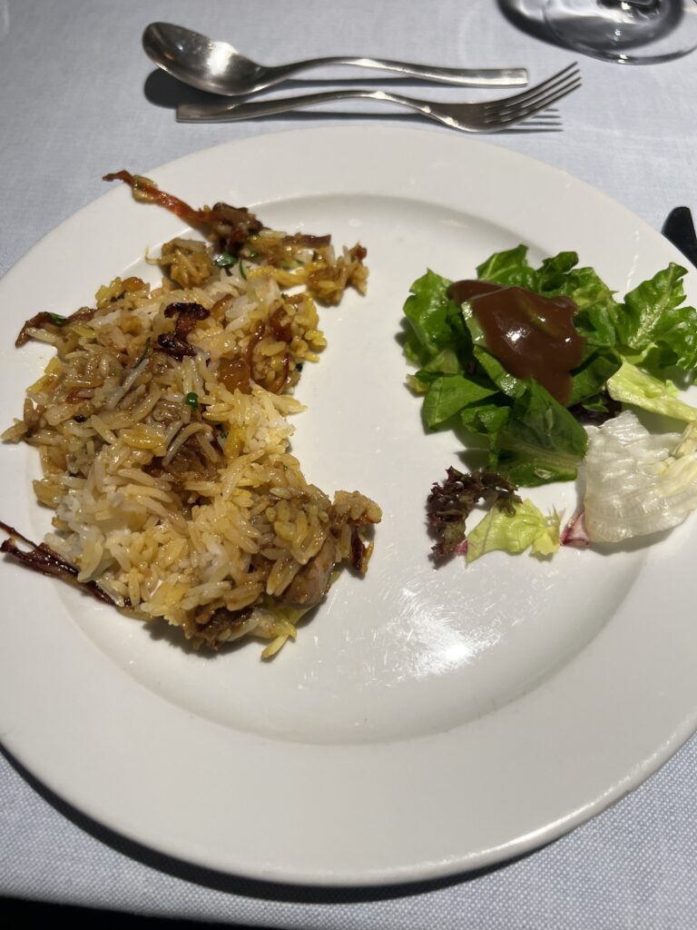 I grabbed some sort of Indian rice with a small salad. The rice was good although I avoided grabbing any of the meat, not knowing what it was. Sad, I know…laughing
