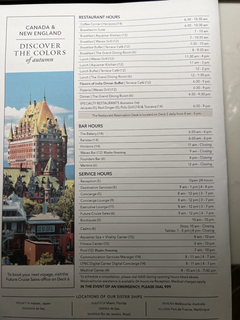 HAL buffet was better than Oceania other than not being able to find a place to sit in the HAL buffet. Jackie said larger and more variety on HAL. Myself – I can’t get past the inability to not find a seat in the HAL buffet although I did like on HAL they served you while on Oceania you have to serve yourself leading to spread of illness as we both know exists.