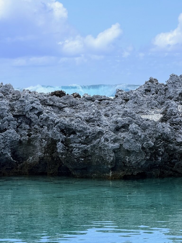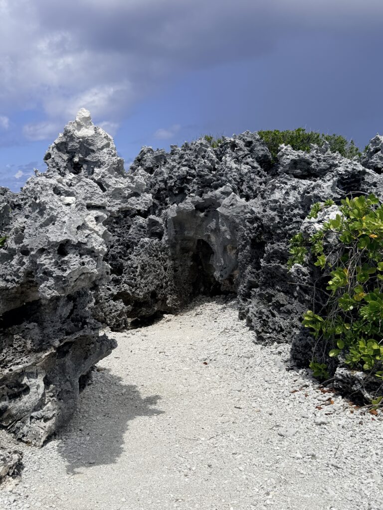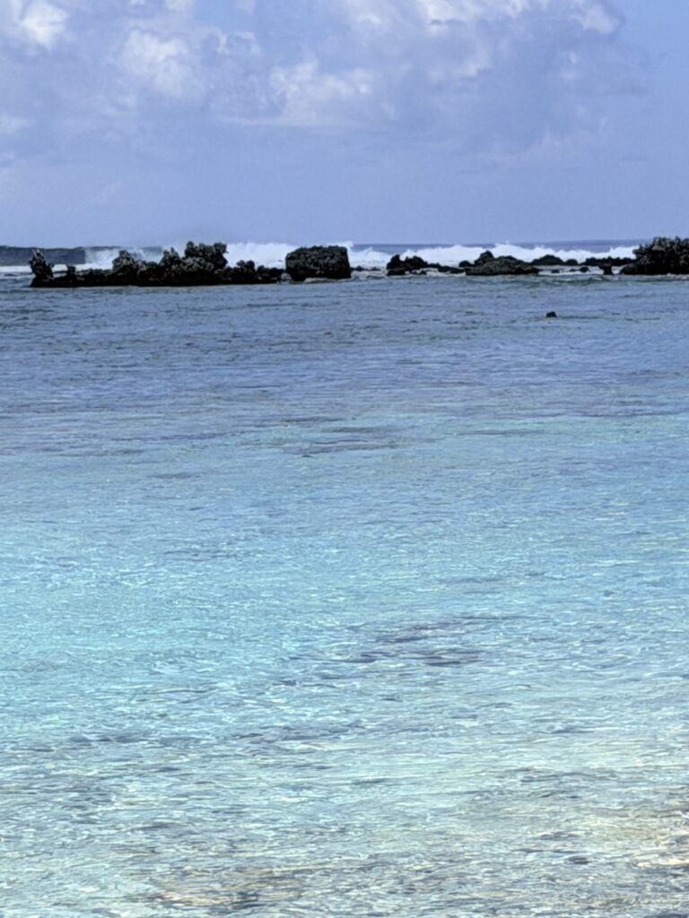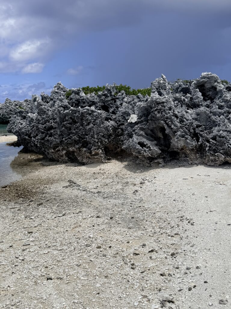 After lunch we walked to where the old dead coral is located. This coral provides protection to the atolls. On the other side of this coral is the Pacific Ocean