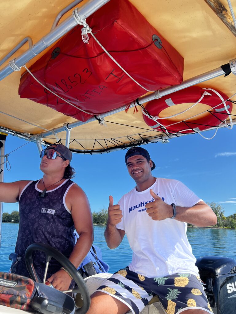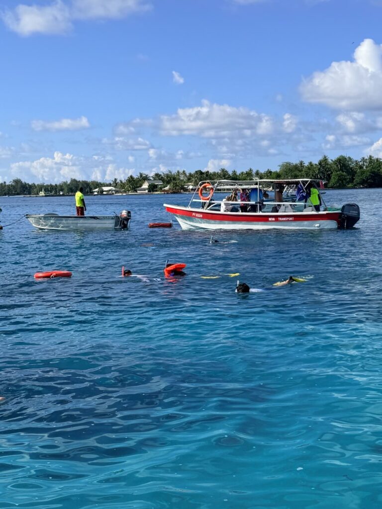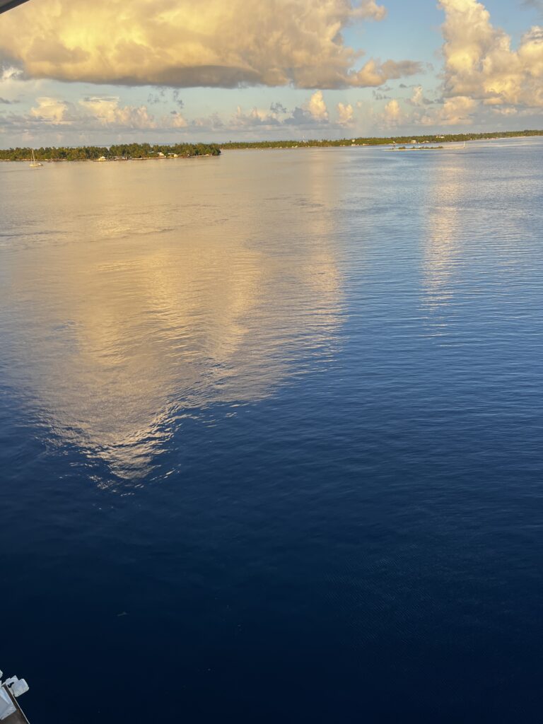 Passing our cruise ship on the way out to the atoll which took about 30 minutes by boat which was powered by a 200HP engine.