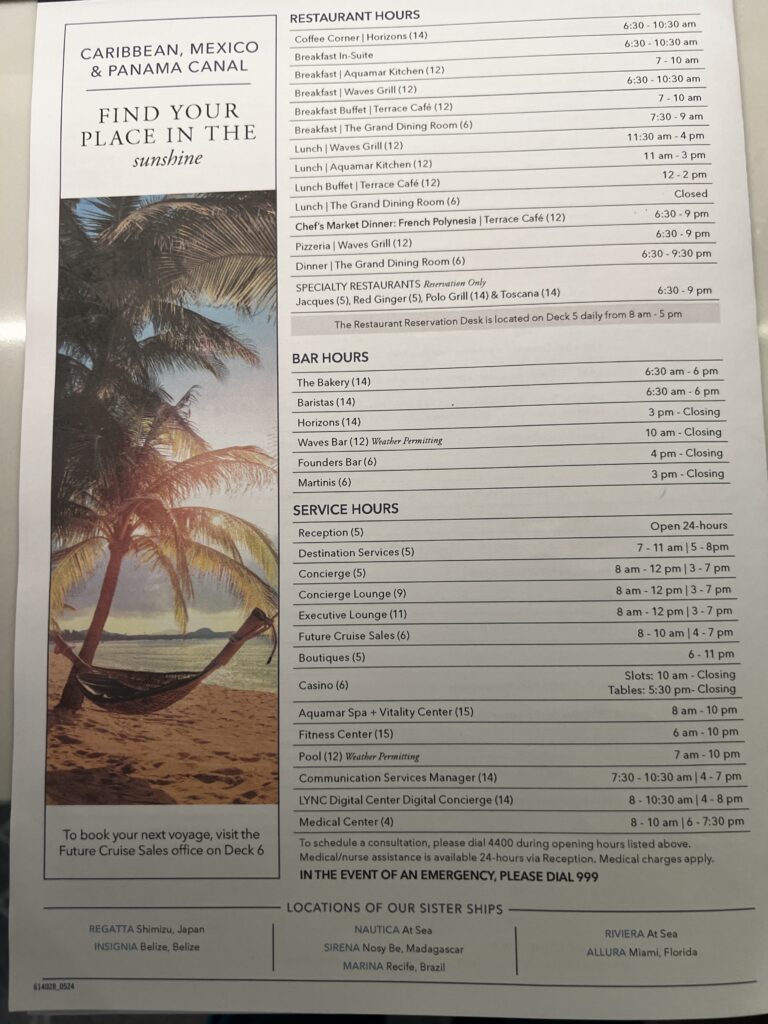 Sadly, when we were at this location, a fellow passenger suffered a MI or PE and despite efforts to resuscitate her, she passed away.