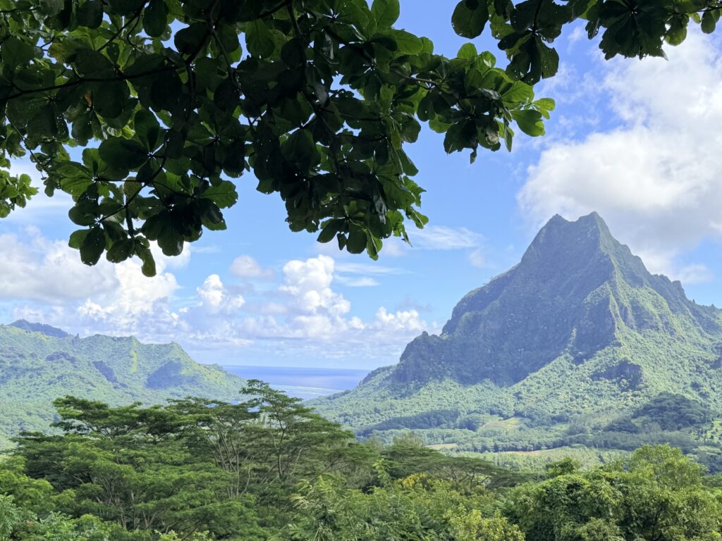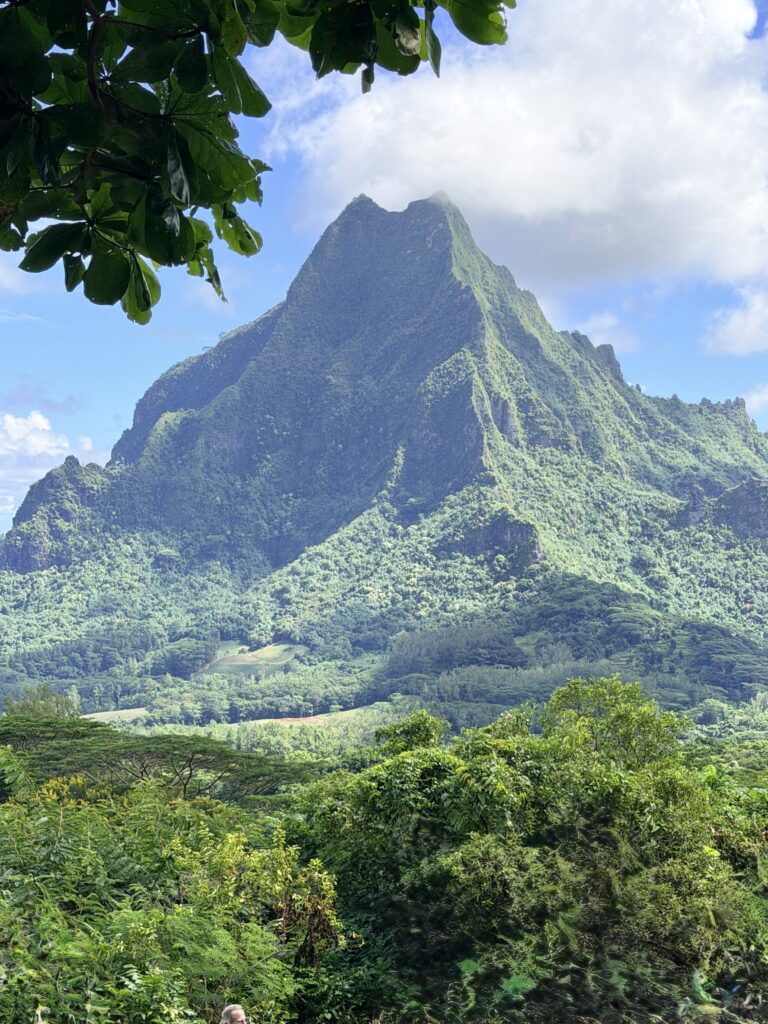 Mount Rotui with a view of bay of Opunohu. On the right side of the Mountain is Cook Bay. History lesson though The Bay of Opunohu is actually the bay that Captain James Cook entered into. It was not named Cook Bay because the Polynesians refused to change the name of the bay.