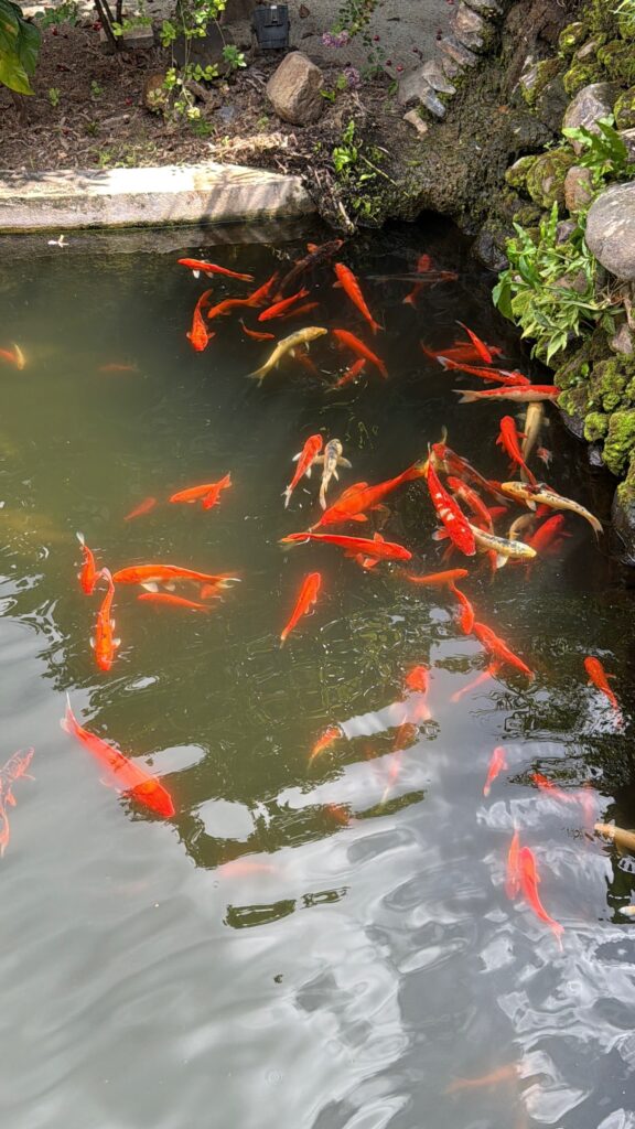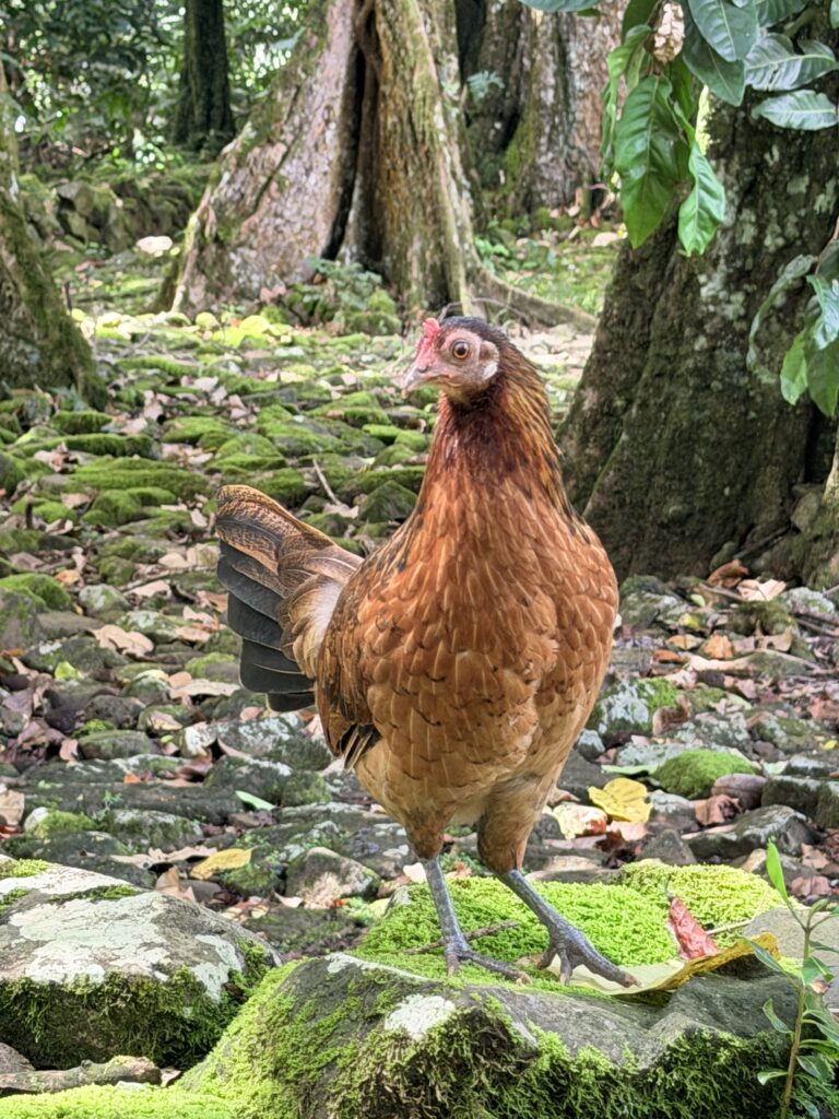 Jackie said the chickens look at you with the look of “Where’s the corn?” Shame I cannot post videos as she has a hilarious one of the chickens racing around the temple on the stones.