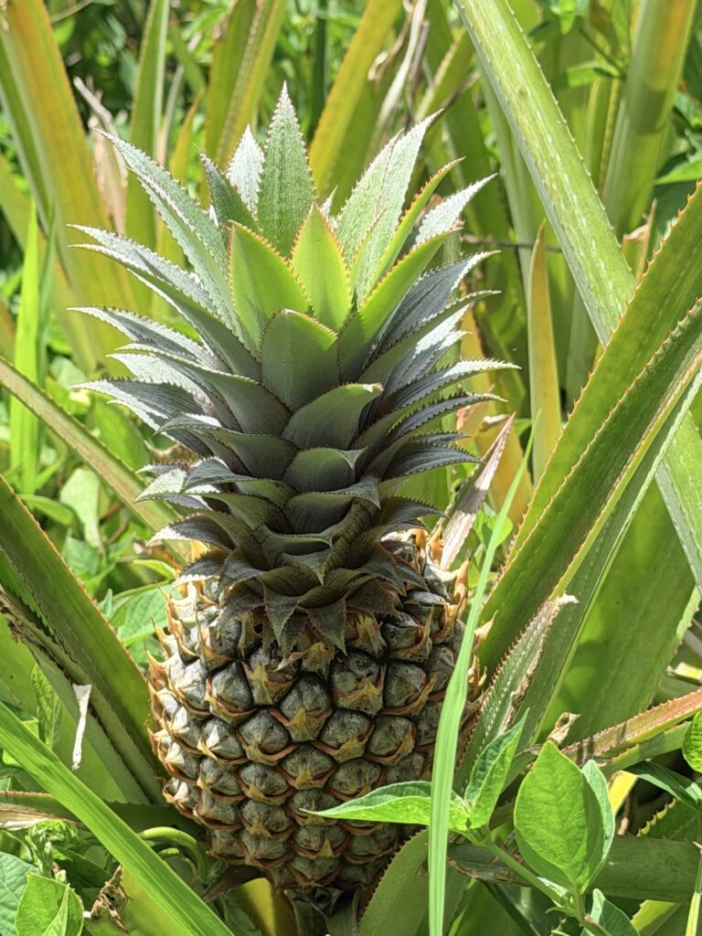 Pineapple farm. The leaves are razor sharp. A pineapple takes eight months before ripe and you can tell when the pineapple is ready when it turns yellow. I always thought a pineapple was ripe for picking when it was turned over? 🙂