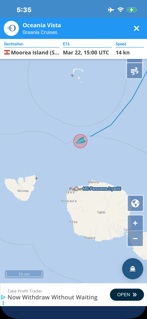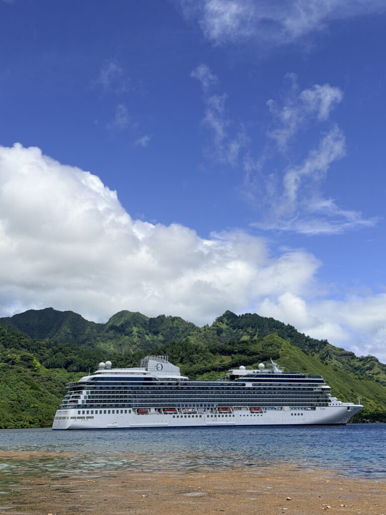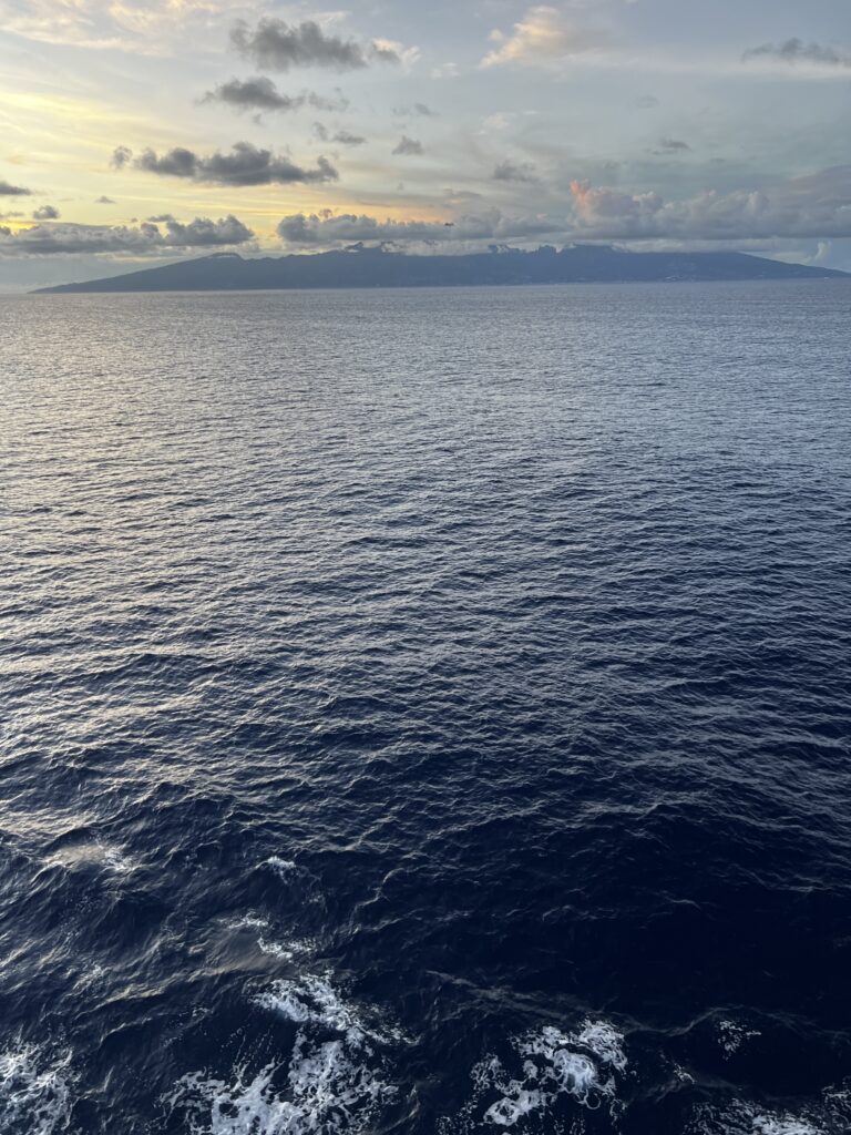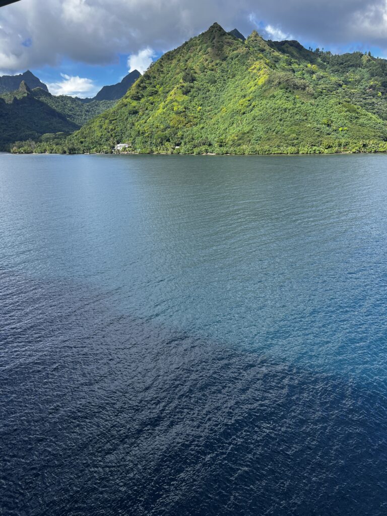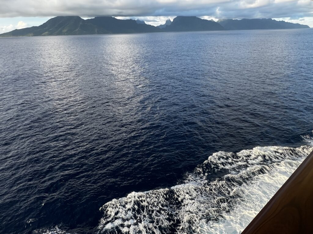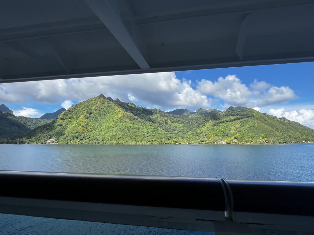 A strange feeling while sitting on the room outside balcony and watching your cruise ship sailing away. It was on the way to Papeete, Tahiti and we would catch up with it the next day. This photo was taken earlier in the day when we were touring Moorea.