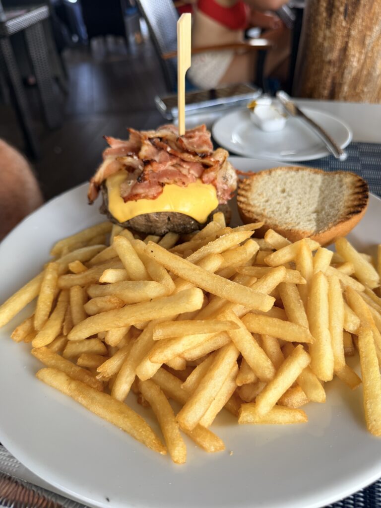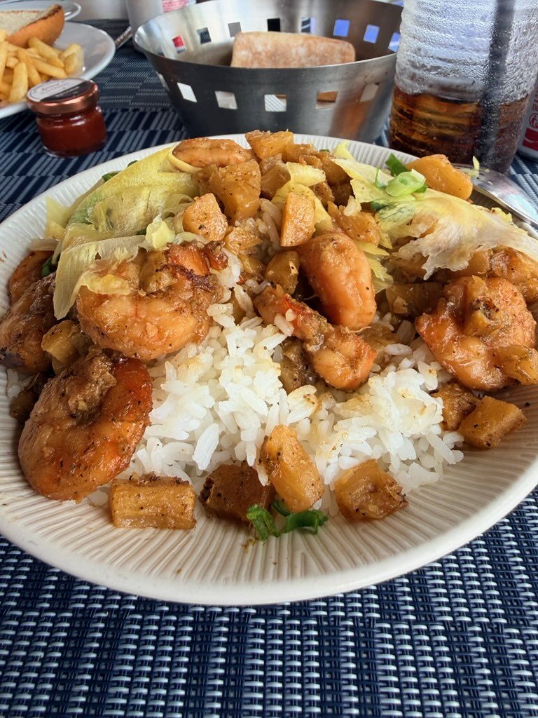 We made it to the hotel around noon and had a check in for 2pm. Below are some photos Jackie took of the hotel while we waited for our check in time. We decided to have lunch which I have to admit was disappointing. I ordered a burger and it was the worst burger I have ever attempted to eat in my life. The bun was rock hard. The bun and meat were about 4 inches high and you could not press down the bun. Jackie ordered it was shrimp and rice which was very spicy and impossible to eat. The spice was from black pepper. The fries were damn good 🙂