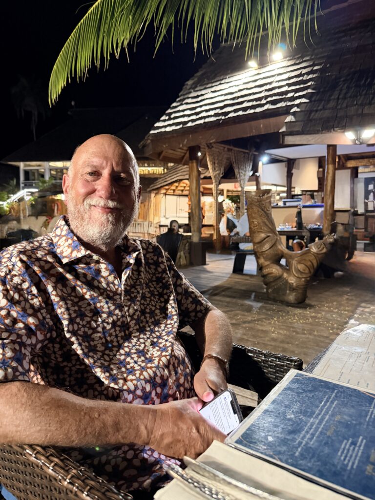 We laughed as there was a young couple in a bungalow next to us and the young woman was being captured for her Instagram pictures. As neither of us qualify for Instagram postings of ourselves in a thong bikini or speedo, these are our Instagram photos 🙂