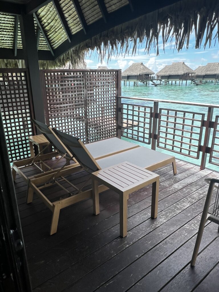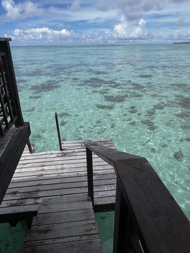 Here are some photos of our overwater bungalow. Not complaining because I need to stop as it does not help but if we could only post a video it would be great.