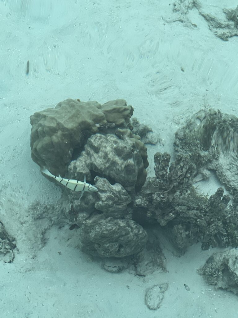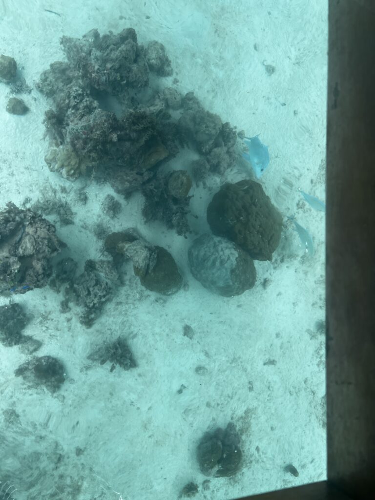 Photo of under the bungalow. The large rock was a great place to see fish hiding or eating