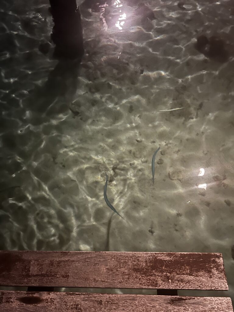 My deterrent from swimming at night especially in the nude 🙂 We only caught one in the photo but where eight of them swimming around waiting on me to enter the water