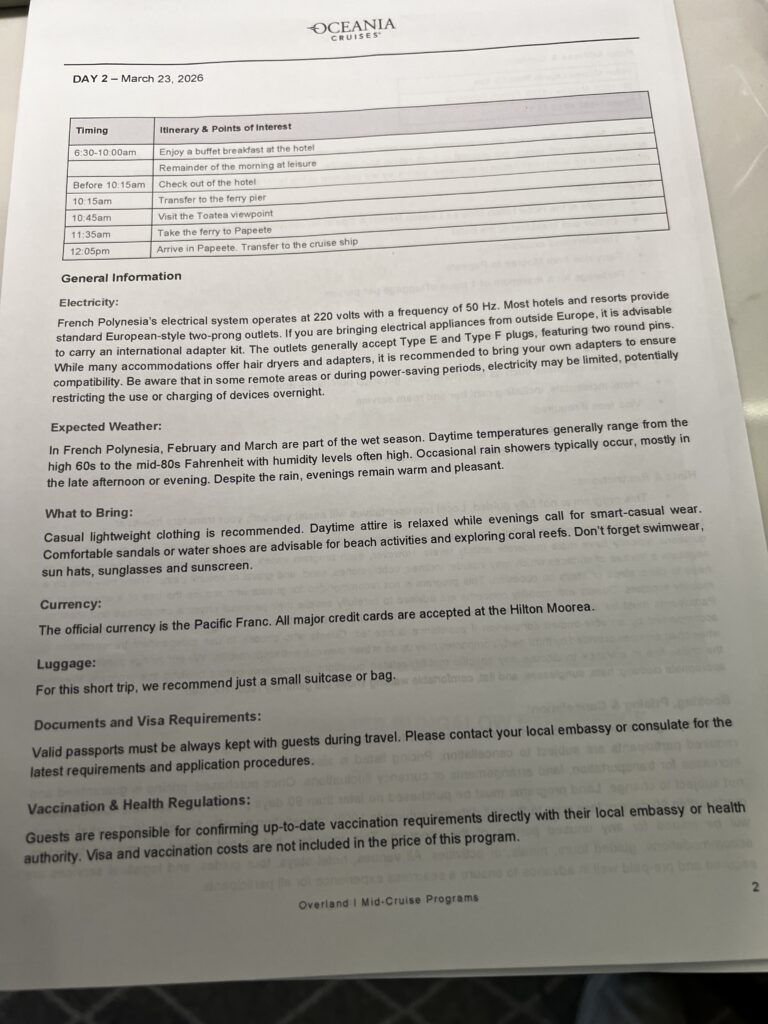 The next morning, we woke up to tropical storm rains. We had some breakfast and then took the van to the ferry and on our way back to the ship in Papeete, Tahiti.