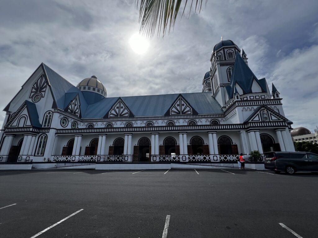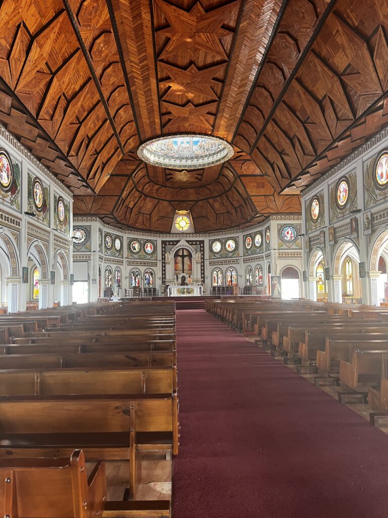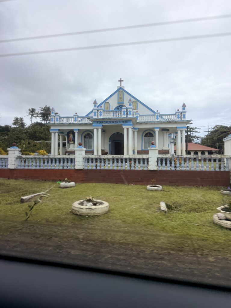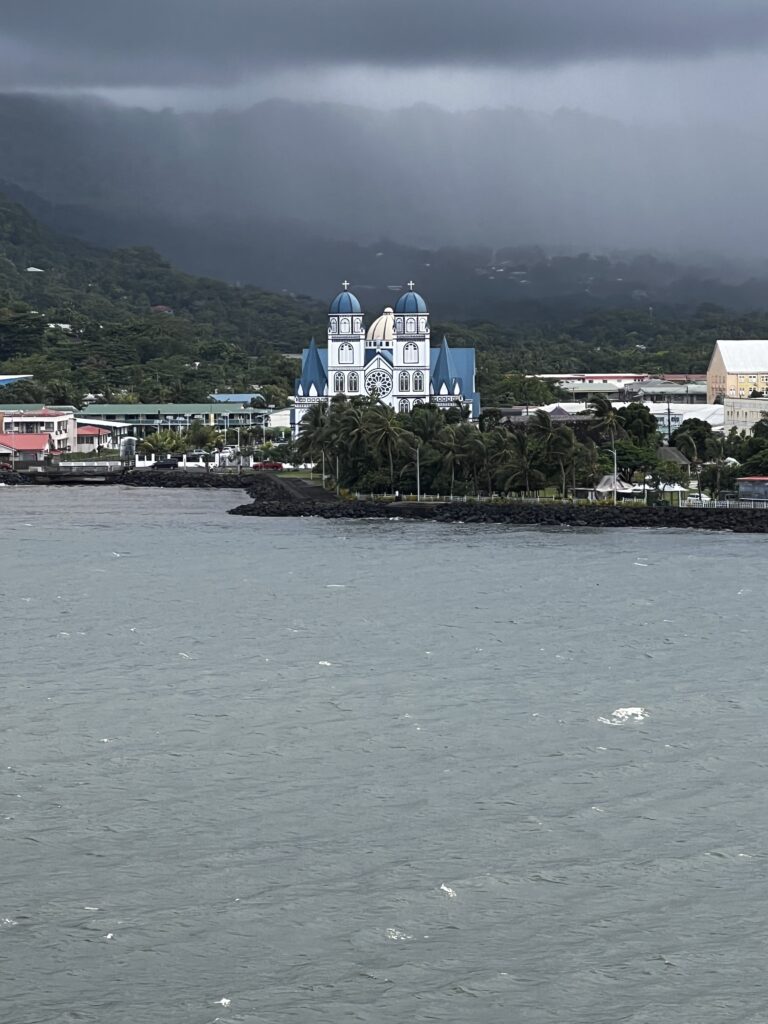 Another stop in Apia was the Immaculate Conception Cathedral. This church was unbelievable with a ceiling we have not seen in any other church that we have visited. It was an open-air church and there was a nice breeze passing through the church. Below is a view of the cathedral from our cabin balcony.
