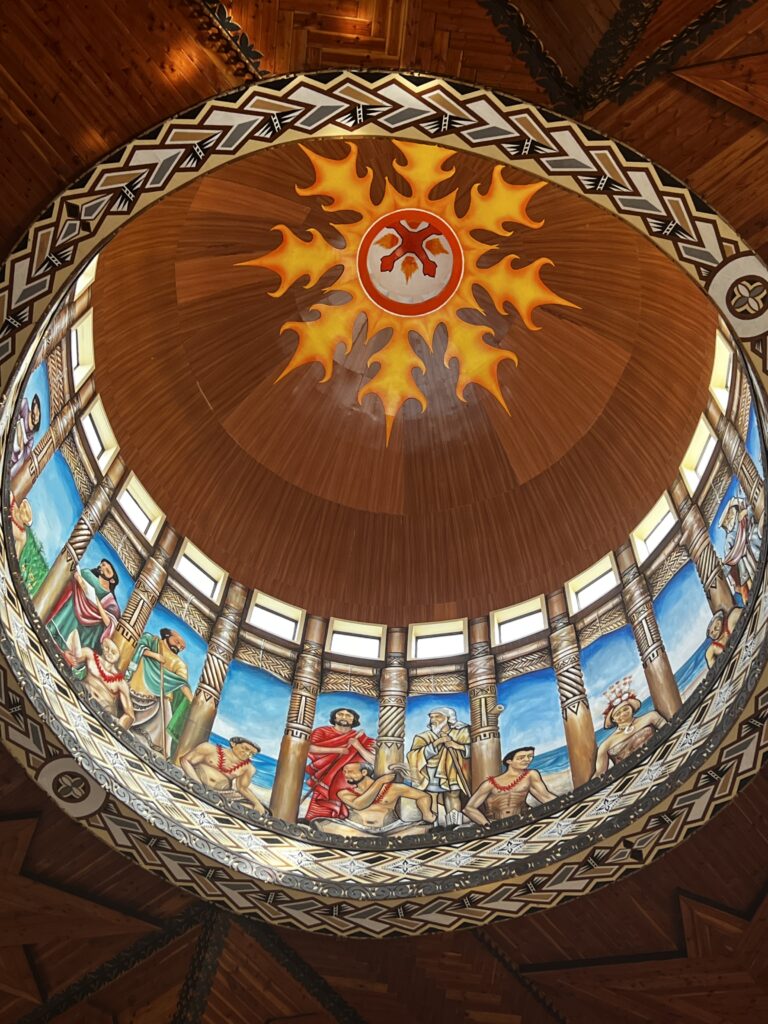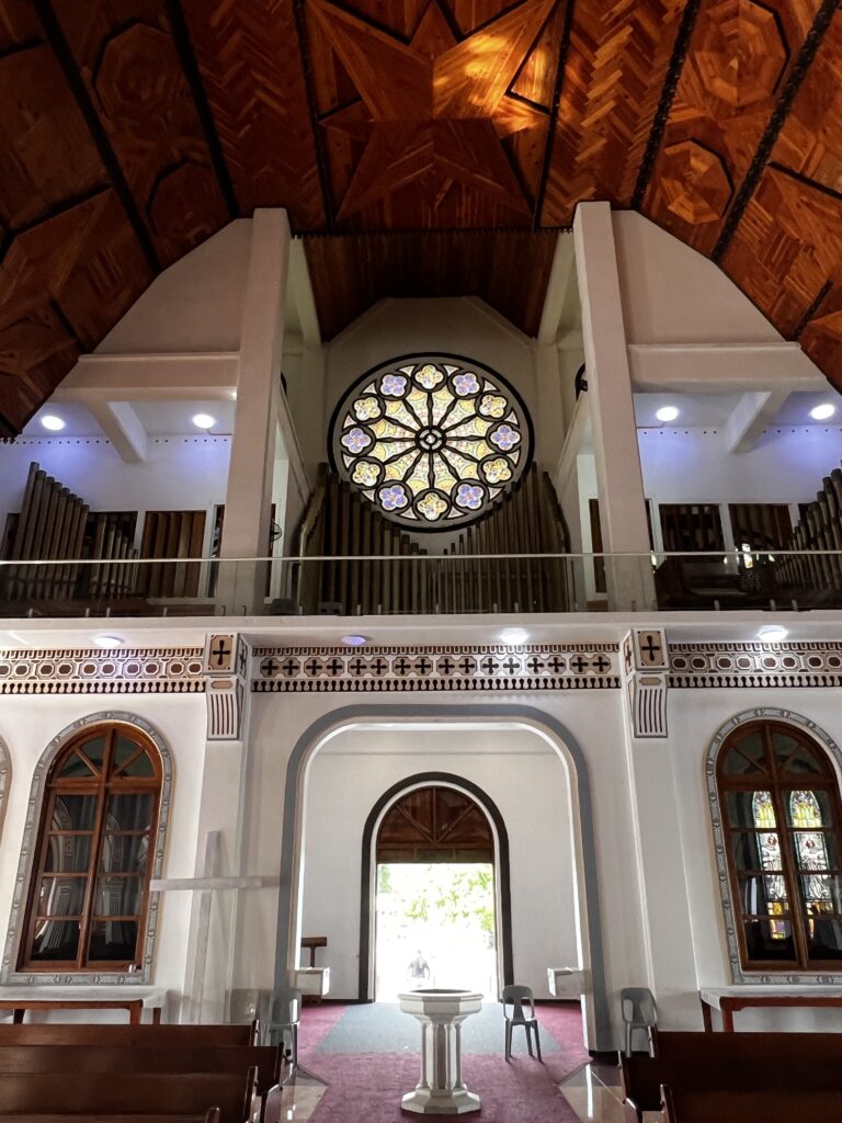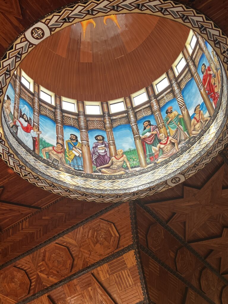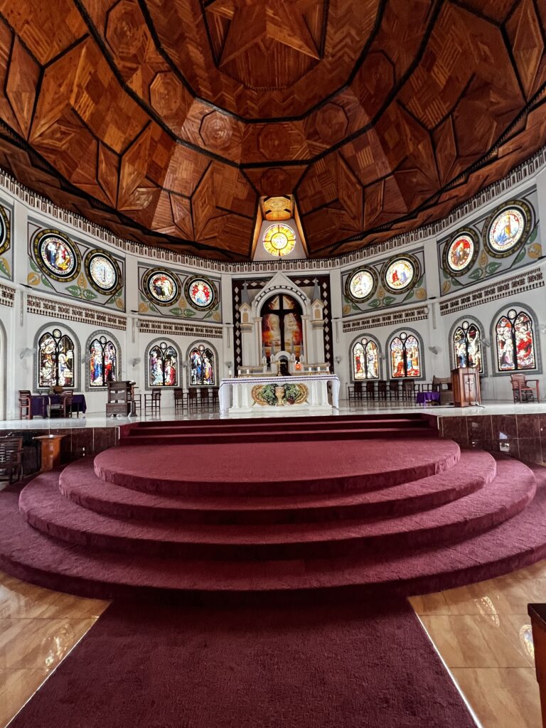 Another stop in Apia was the Immaculate Conception Cathedral. This church was unbelievable with a ceiling we have not seen in any other church that we have visited. It was an open-air church and there was a nice breeze passing through the church. Below is a view of the cathedral from our cabin balcony.