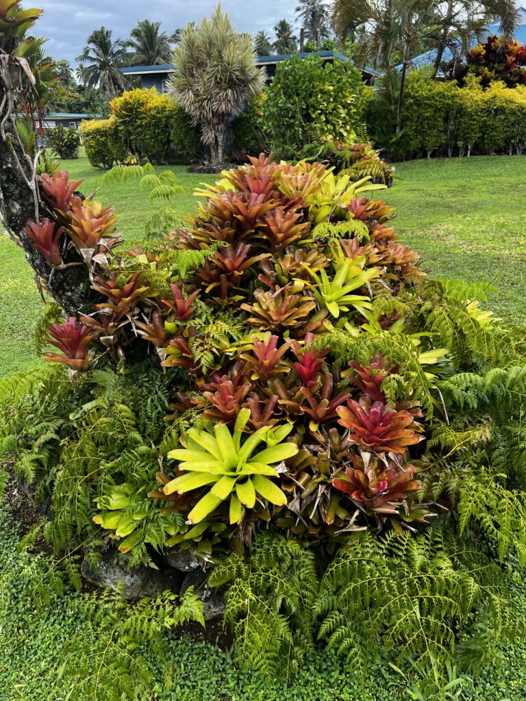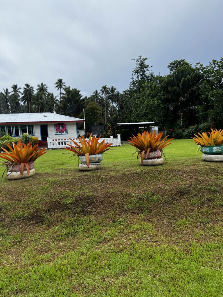 Splendid gardens fill the surrounding area. There is also an area for umu demonstrations and coconut husking. We began to see the beautiful plants and flowers that are all over this island of Samoa.