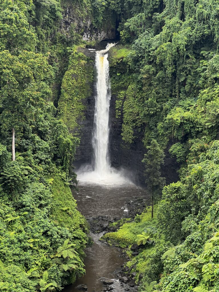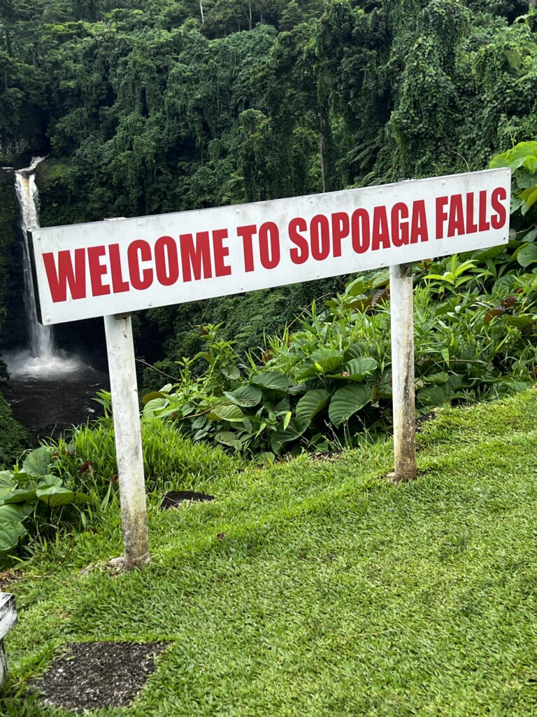 Sopoaga Falls – A tall, beautiful waterfall surrounded by gardens and greenery