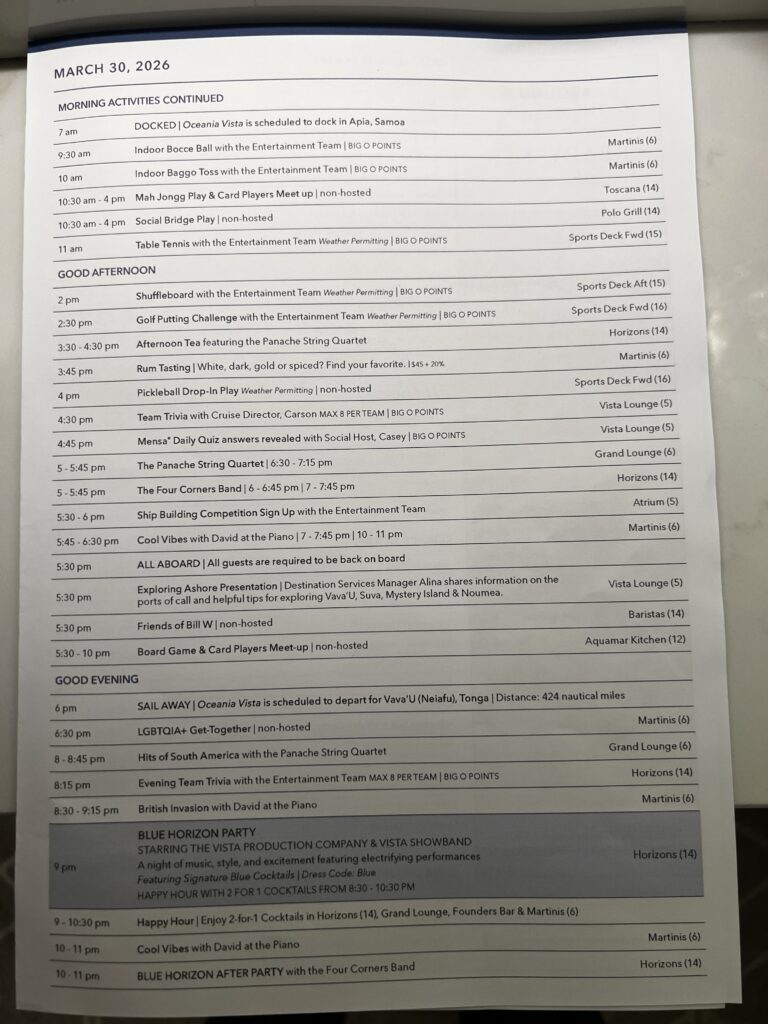 I will work on our American Samoa visit. When I post it, you will notice the date was March 28th and the next day in Samoa is March 30th. We crossed the International Date Line so now we are a day ahead of the United States.