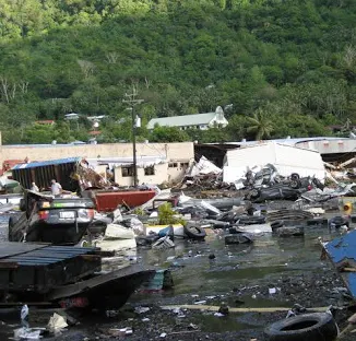 Twenty villages on Upolu south side were reportedly destroyed, including Lepā, the home of Samoa’s Prime Minister Tuila’epa Sa’ilele Malielegaoi. In Lepā, only the church and the village’s welcome sign remained standing following the tsunami. The hardest hit areas in Samoa appear to be Fagaloa Bay on the east coast of Upolu, Lalomanu on the south east coast, and along the rest of the southern coast of the island, with one hospital in Apia reporting it had received 79 bodies. The village of Poutasi on the south west coast of Upolu was reported with extensive damage in a TVNZ news item, along with its neighbouring Villages of Satalo and Salani being completely wiped out. A mother at the Taufua Beach Fales in Lalomanu watched her three young children swept away by the tsunami. Elsewhere there were reports of landslides near Solosolo and damage to plantations near Apia.