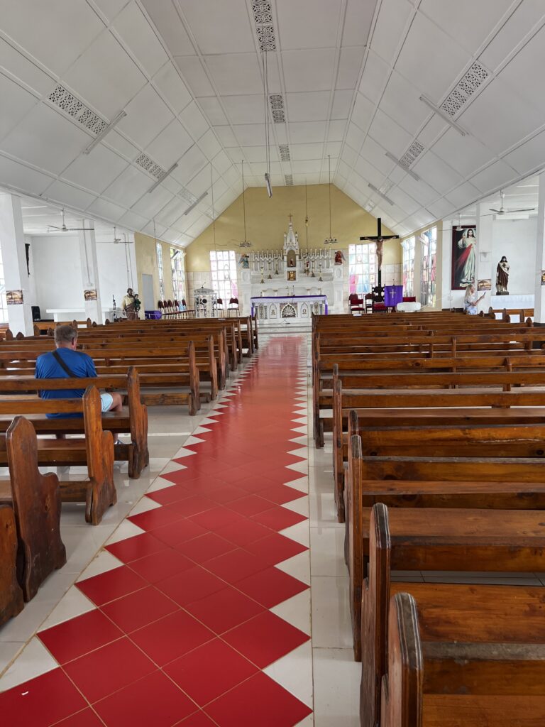 The church has windows all the way around, but it was like an oven in here. I think maybe the fans help during mass but I’m not sure the fans would make a difference.