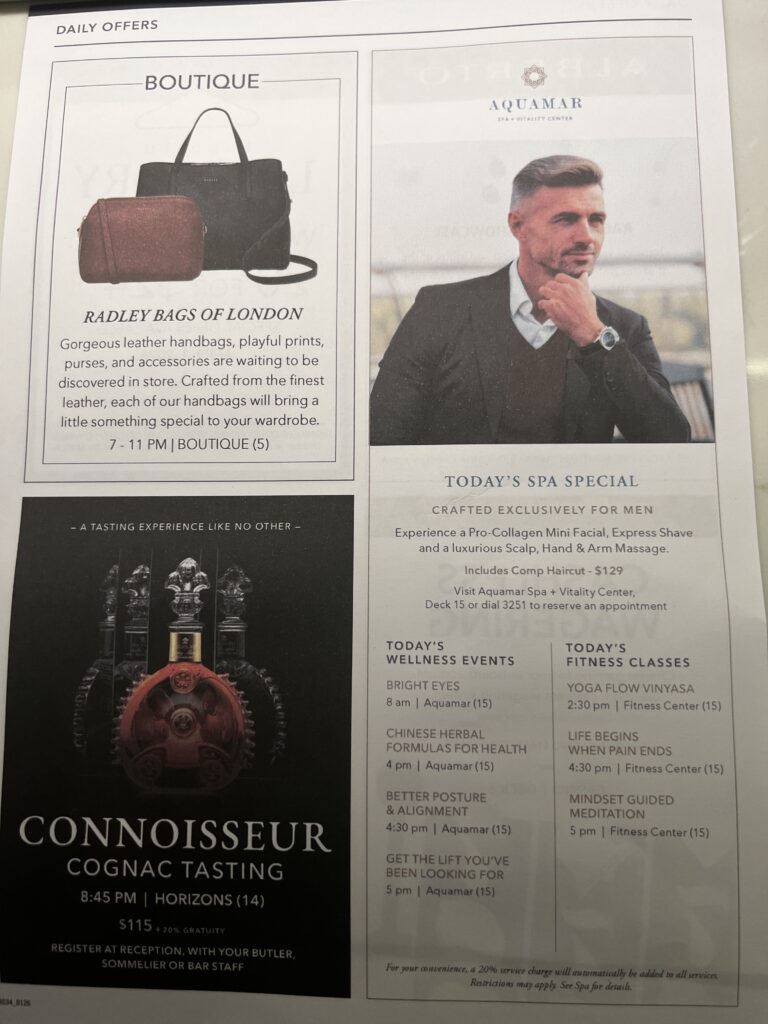 The great thing about sea days is that you cannot weigh yourself as the scale ranges +/- 15 pounds with the motion of the ship. Then, you can conveniently forget to weigh yourself when stable in a port.
