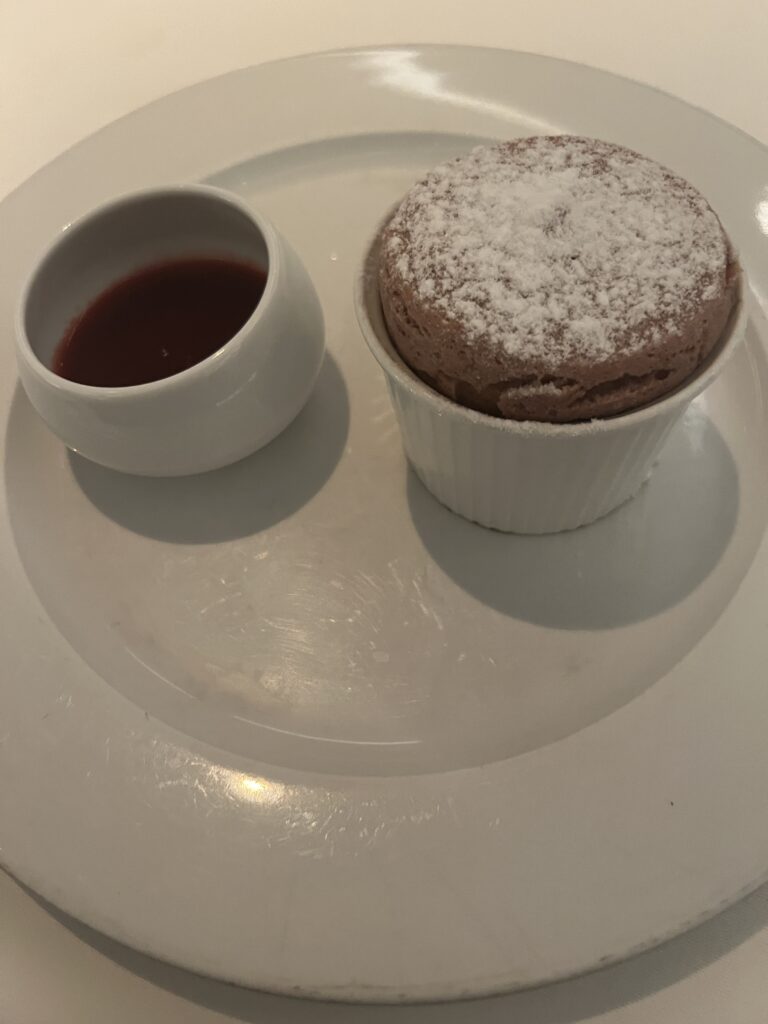 The raspberry soufflé would have been my choice too 🙂 Looking at all your food/dessert pictures I already feel like I’m gaining weight and I don’t board until January. LOL