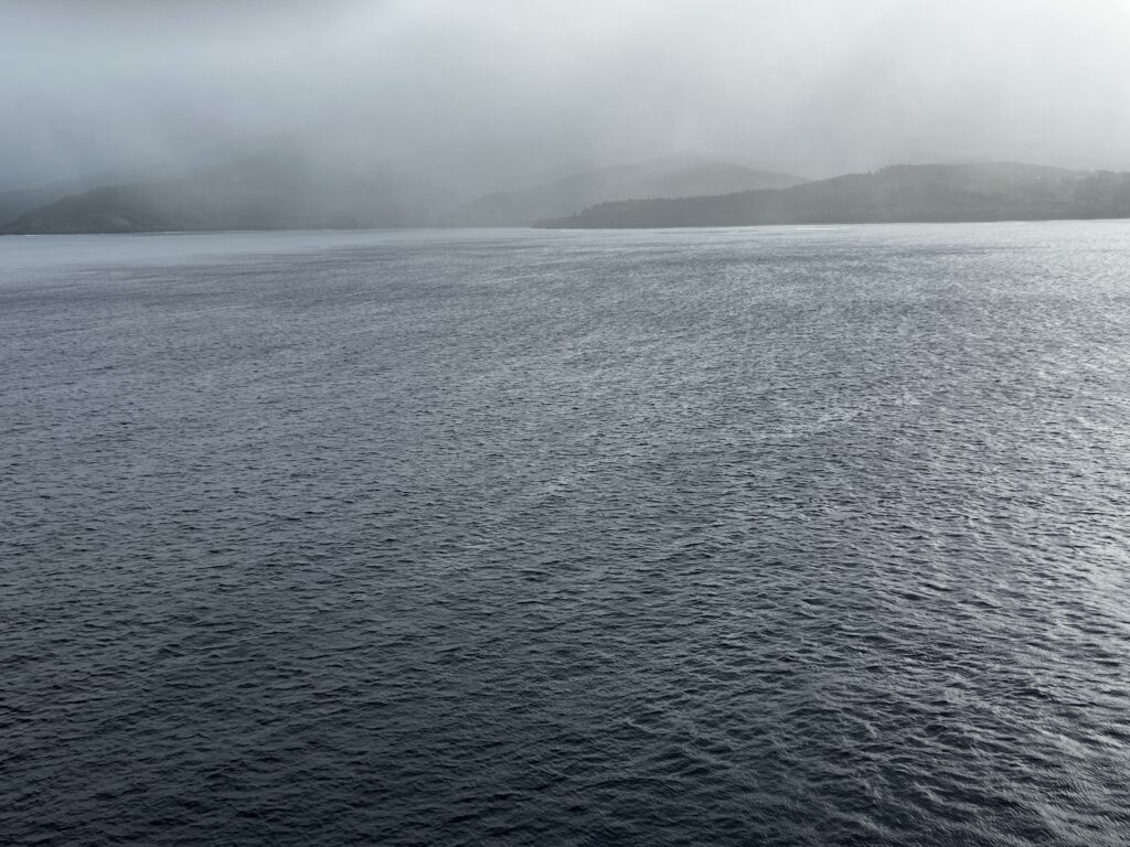 Our first look towards the direction of Mystery Island this morning. The fog and rain made it difficult to spot the island. It does look sort of mysterious in this photo.