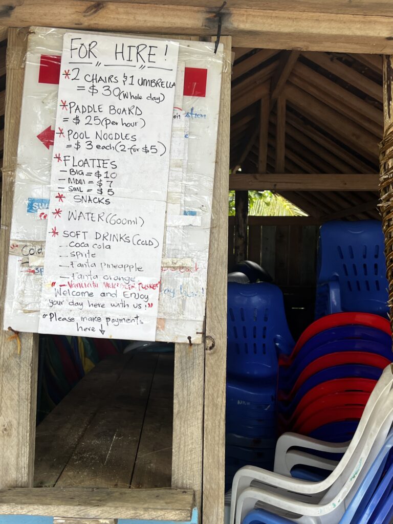 A walkway leads from the pier to the interior of the island where the Anatom villagers sell their crafts and wares. It is also where they offer massages, food and beverages, snorkeling and fishing tours, SUP, Kayak, and canoe rentals, hair braiding, and cabanas for rent.