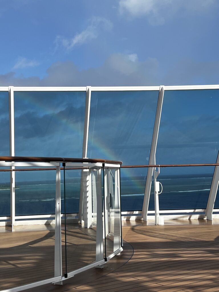 After getting back on the ship we had a burger and club sandwich then went up to the spa deck and I captured this rainbow as we began to sail away. A great end to a perfect day.