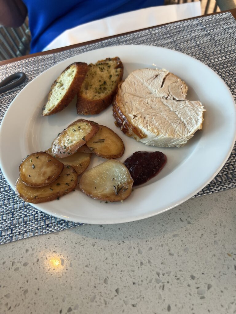 Jackie had turkey and roasted potatoes from The Terrace Cafe