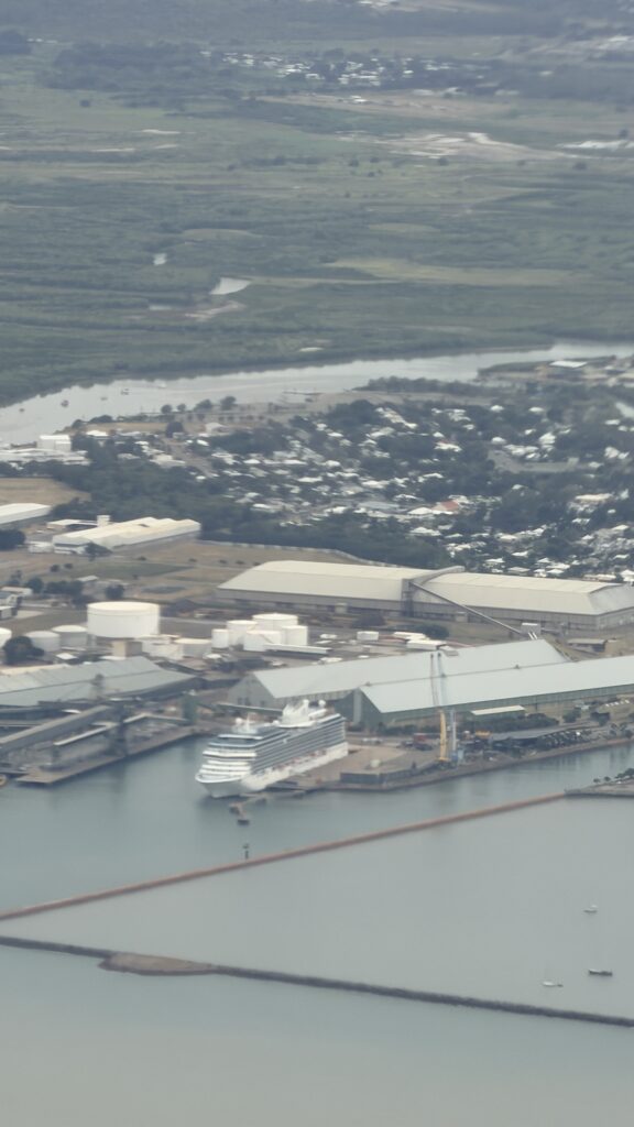 Jackie captured a picture of The Vista at the cruise terminal as we flew away from Townsville