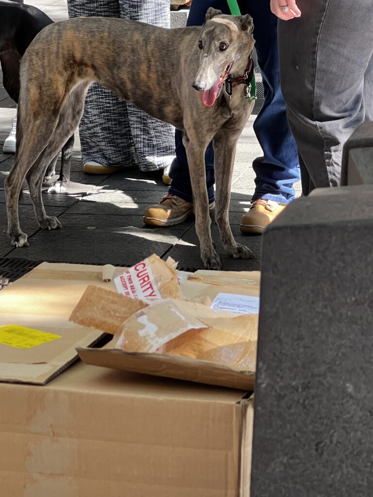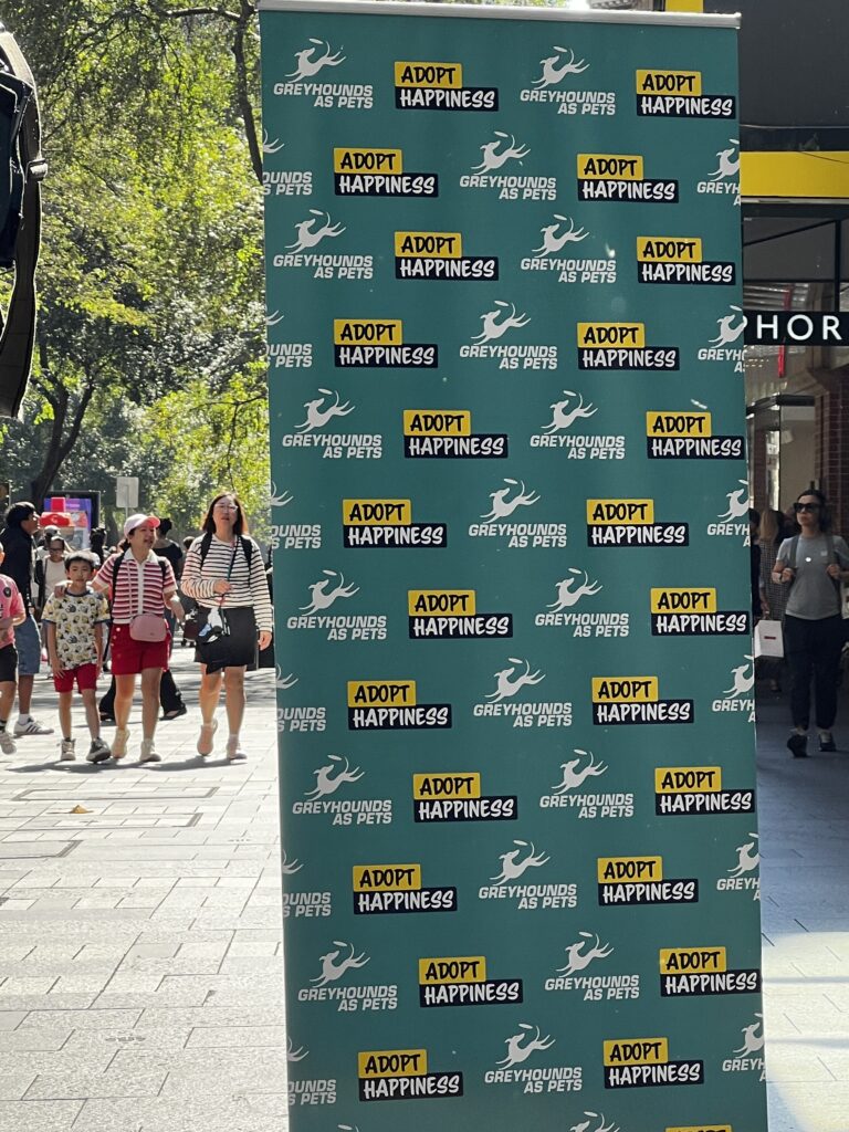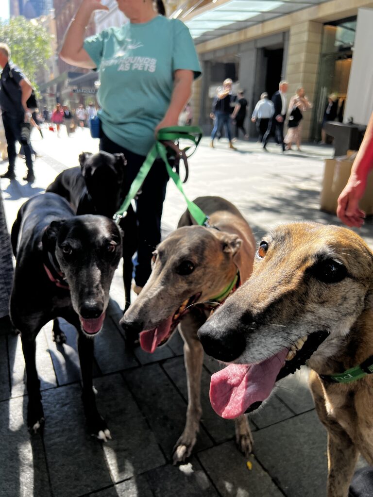 Day 41 Thursday April 16th (79 days to go) — We started a little late this morning after our late night at The Sydney Opera House. Jackie needed to pick up a few things we walked down to Sephora in the Pitt Street Mall. I took one walk inside and saw wall to wall women and cosmetics and made the wise decision to sit outside. While sitting there all these greyhounds were being walked towards me and then were in a group next to me. I saw the handlers had adoption t-shirts on but did not realize they were filming a commercial or video for Greyhounds as Pets, an organization in Australia that helps to have former greyhounds that were used for racing to be now adopted as a pet. While watching them film the videos I spoke to a man that was with the group and did not realize he was a TV personality in Australia by the name of Todd McKenney. He is an ambassador for the group and was in the video. Just a crazy world when you meet people and don’t even realize that they can be a personality. The guy probably said the same about me. 🙂