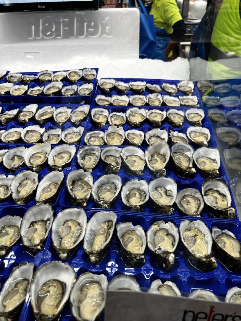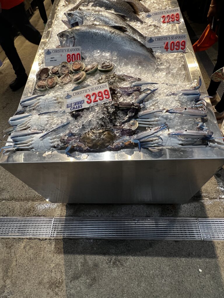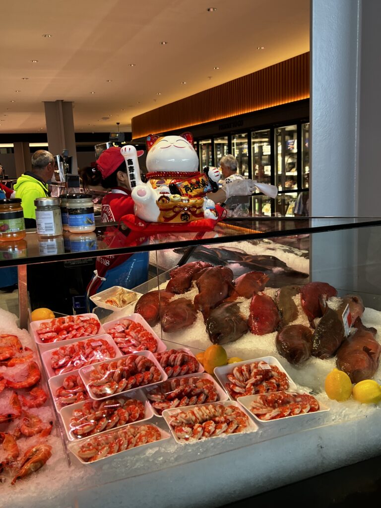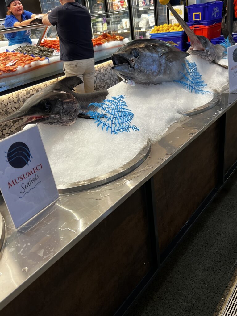 Sydney Fish Market incorporates a working fishing port, wholesale fish market, fresh seafood retail market, a delicatessen, a sushi bar, a bakery, a gift shop, a fruit and vegetable market, a new meat deli, a beverage outlet, a seafood cooking school, indoor seating and an outdoor promenade for visitors. There are daily wholesale auctions for Sydney’s seafood retailers. Since 1995, the markets have been open continuously over a 36-hour period stretching from 5am AEDST on 23 December to 5pm AEDST on Christmas Eve each year that is known as the ‘Seafood Marathon’.