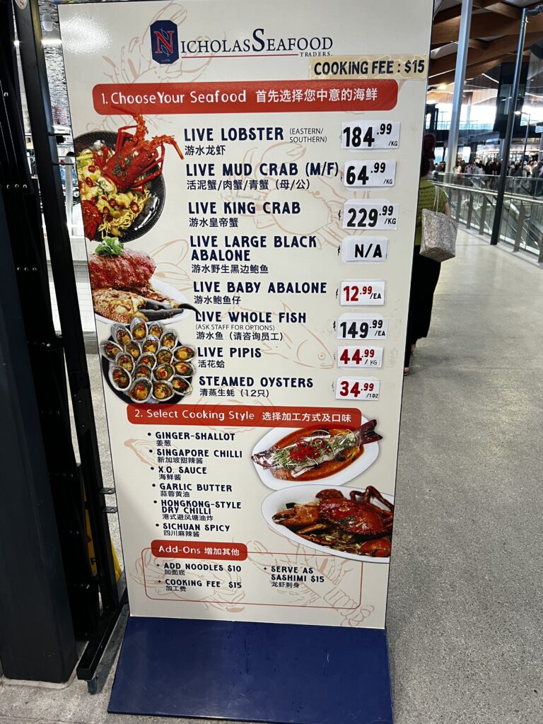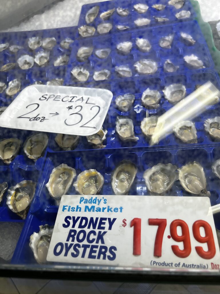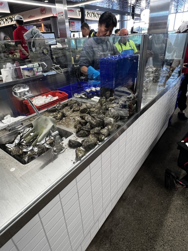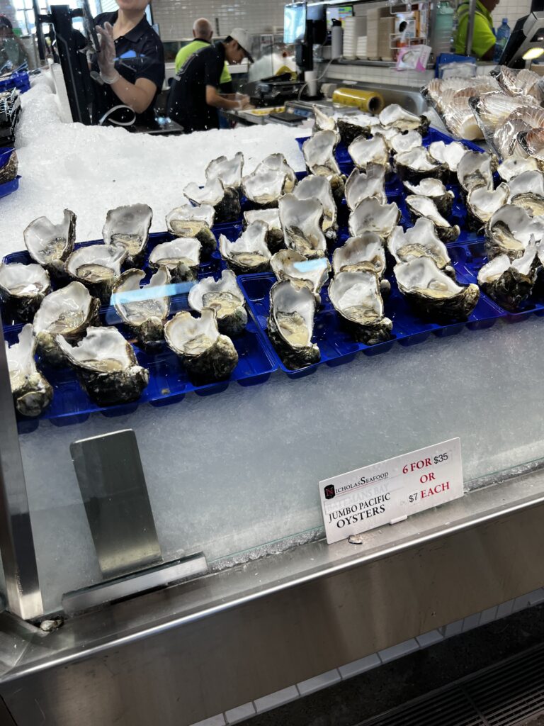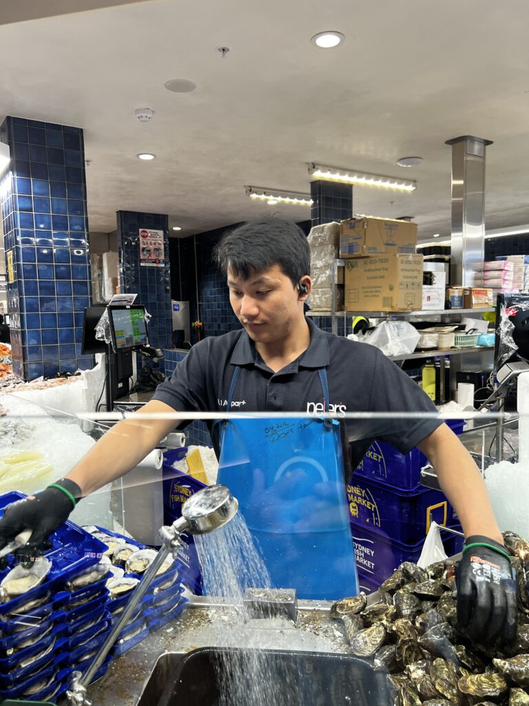 Sydney Fish Market incorporates a working fishing port, wholesale fish market, fresh seafood retail market, a delicatessen, a sushi bar, a bakery, a gift shop, a fruit and vegetable market, a new meat deli, a beverage outlet, a seafood cooking school, indoor seating and an outdoor promenade for visitors. There are daily wholesale auctions for Sydney’s seafood retailers. Since 1995, the markets have been open continuously over a 36-hour period stretching from 5am AEDST on 23 December to 5pm AEDST on Christmas Eve each year that is known as the ‘Seafood Marathon’.
