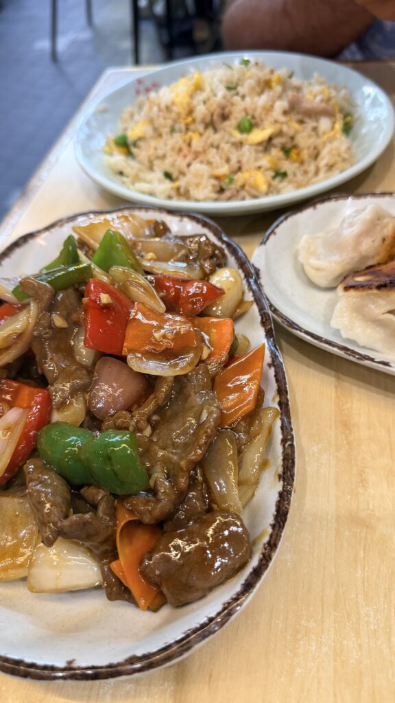 We kept it basic for lunch with pork fried rice (we miss Chinese Garden’s Polka Fried Lice :-), Pork dumplings and Mongolian beef