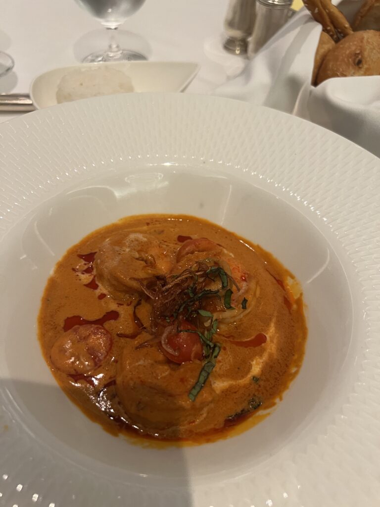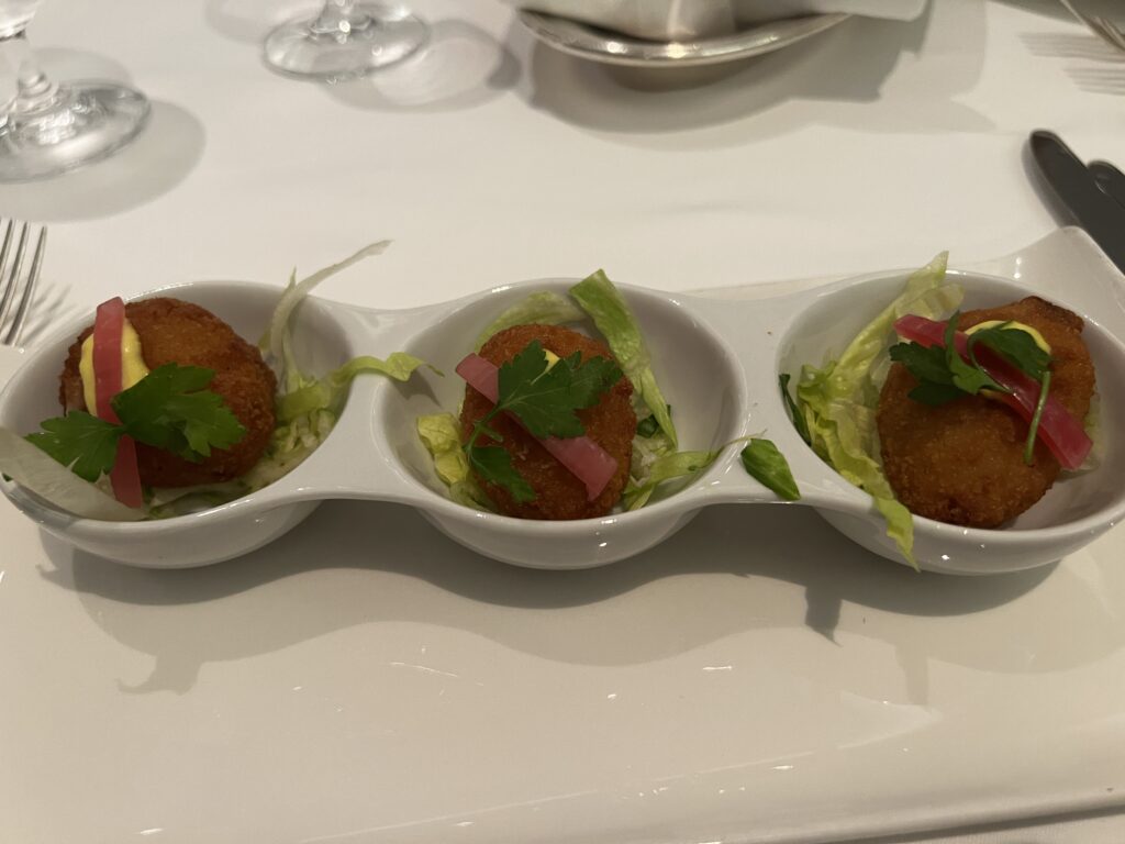 Lane had ham fritters, Cajun gumbo, red curry prawns and salted caramel ice cream.