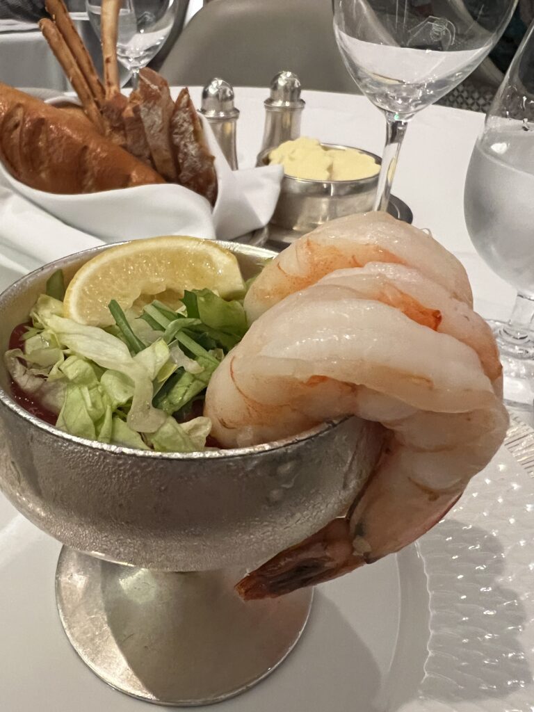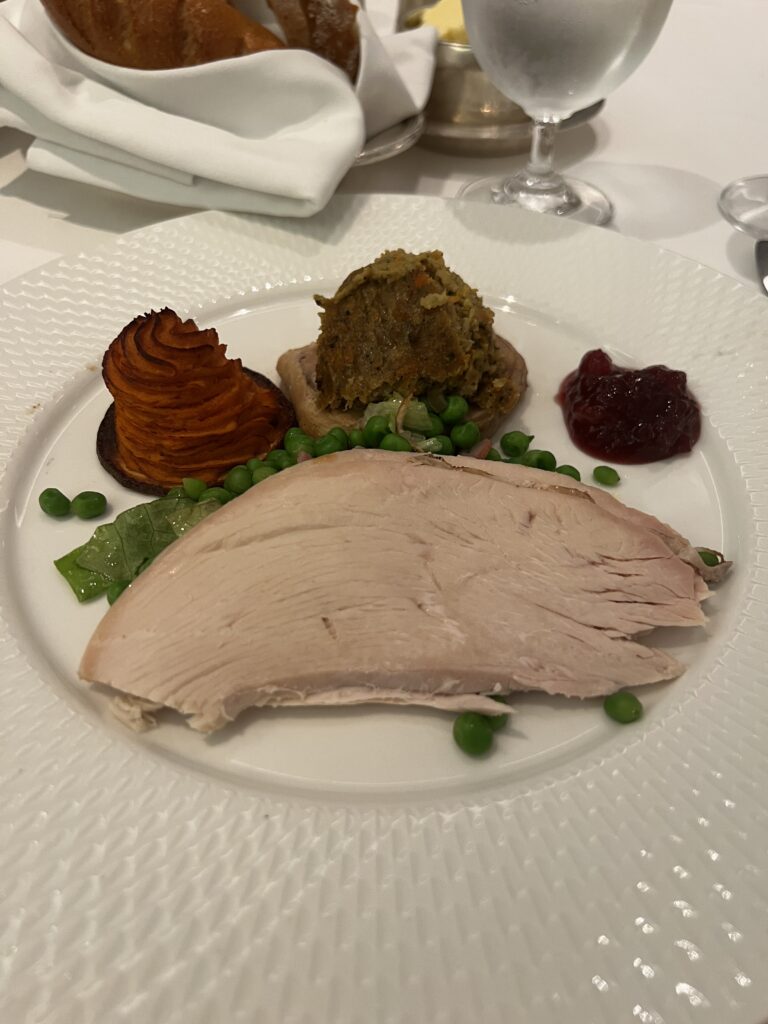 Jackie had chilled shrimp, roasted turkey and Madagascar vanilla charlotte.