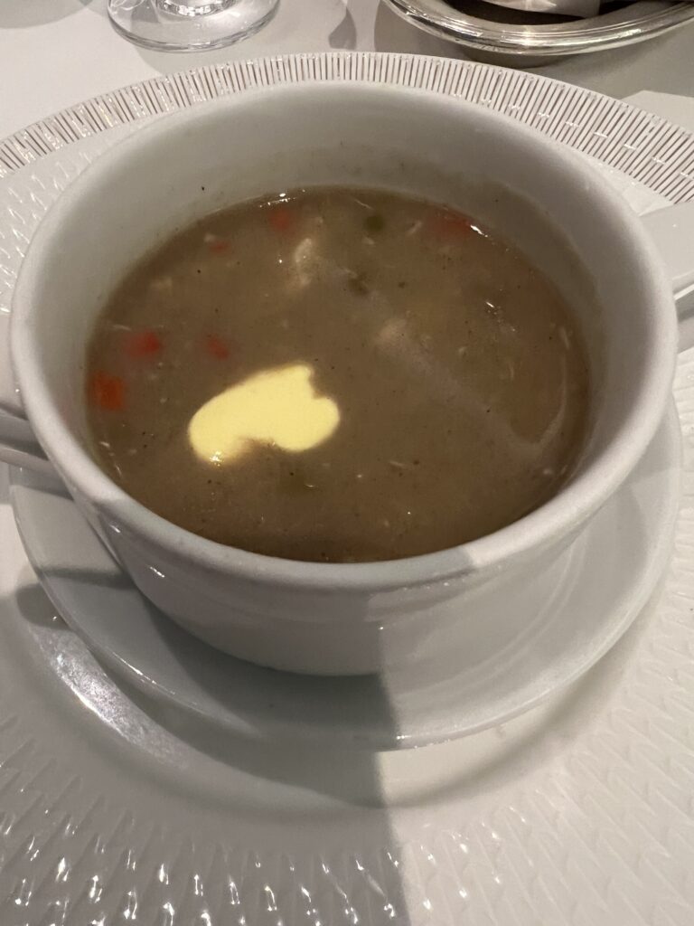 I ate it but it was certainly about ten levels below my gumbo. It was good but something different about it. Jackie identified it after she took a taste. They use too much sassafras. It was really thick and not much rice, but it would do in a pinch.