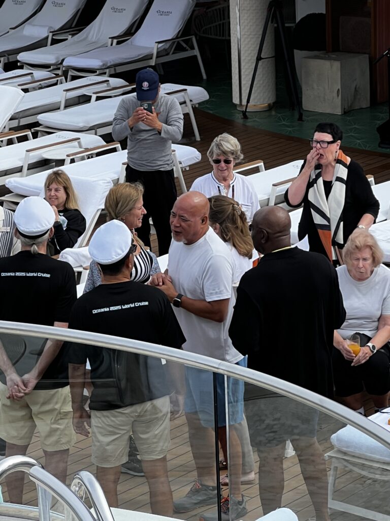 Great news we slept until 7:30am!!!! Now, time for some breakfast and then at 10:00am we are going to cheer for David Chen and Marta as they have advanced to the finals of the ship’s version of The Amazing Race.