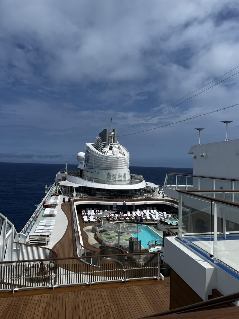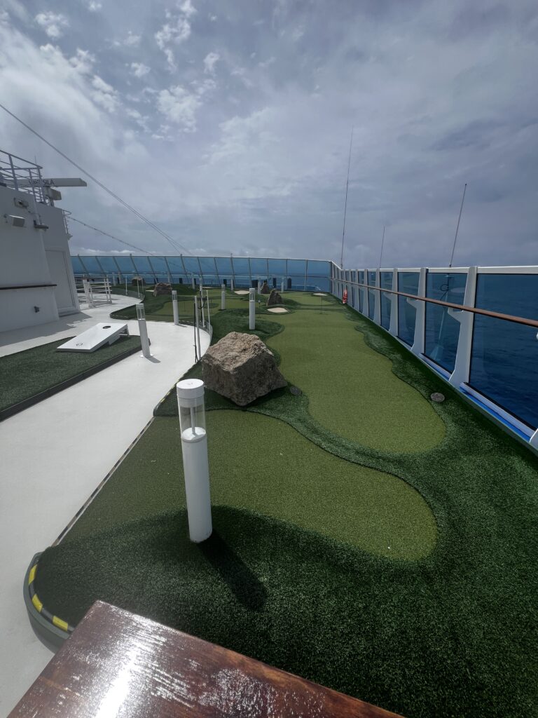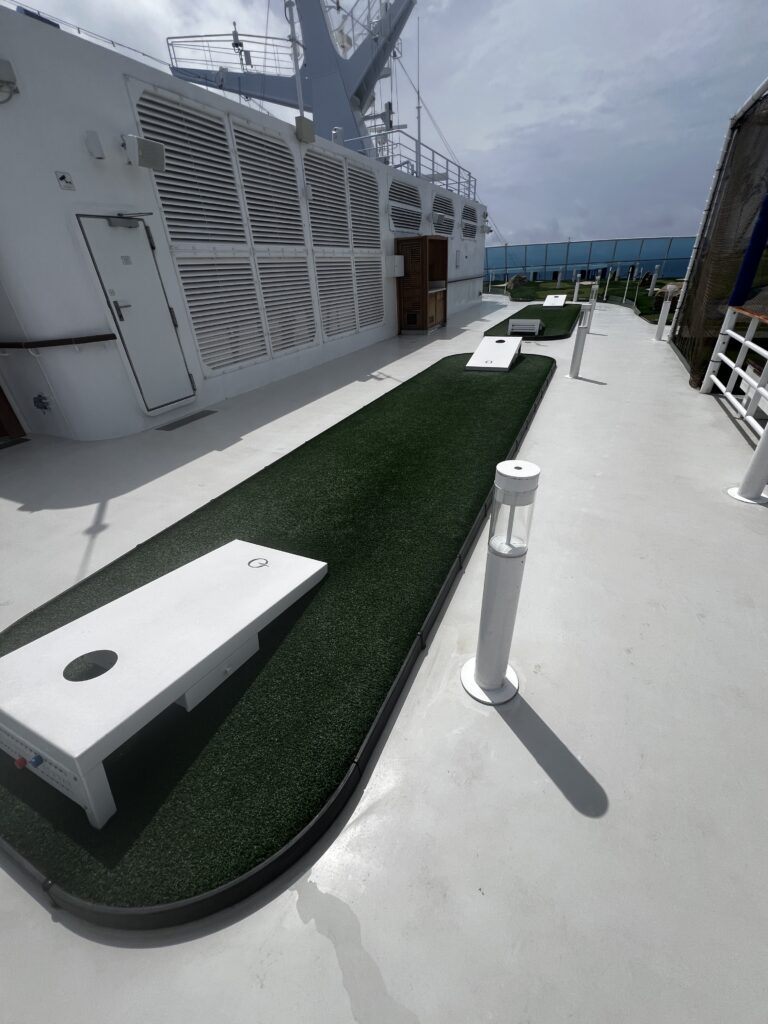 After lunch we went check out deck 16 which is a sports deck. There are two beanbag toss areas, a practice golf driving setup, miniature golf course and a paddle ball court. After this it was time for an afternoon nap and then I attended the last in the series on Hawaii called “The Day That Changed Everything” which focused on The Pearl Harbor Attack, specifically he dove into the reasons for the attack and then continued from that point to cover December 7, 1941 and the aftermath. Sunday he (James Grant-Peterkin) will start a new series. His talk will cover the real Robinson Crusoe, which should be interesting.