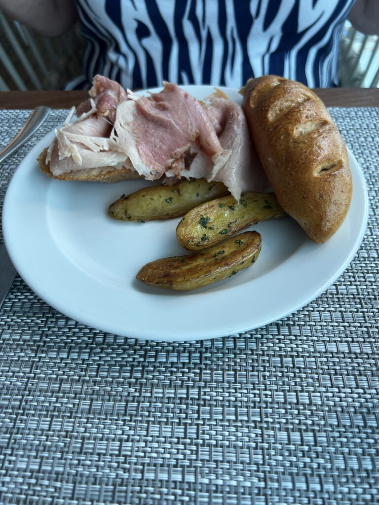 We slept in this morning and finally got out of the cabin around 11am to grab some lunch at The Waves Grill. Jackie had a ham sandwich (sometimes you just have to take a step back)