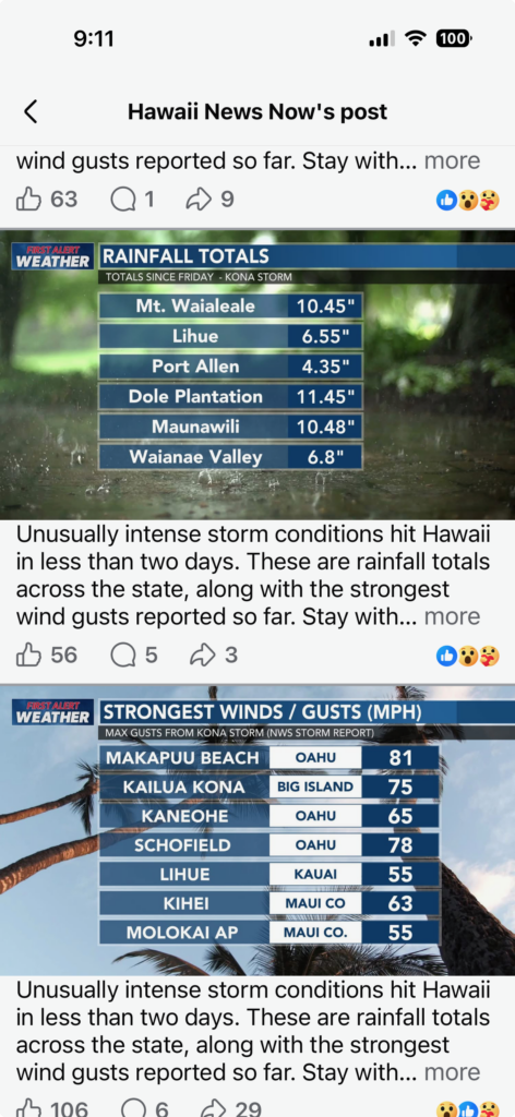 Thank you Jo Jo!!! As much as the rain created issues for us, our complaints cannot compare to the misery the citizens of Hawaii had to endure these past few days. I will be ready to see dry land again on Thursday!!!