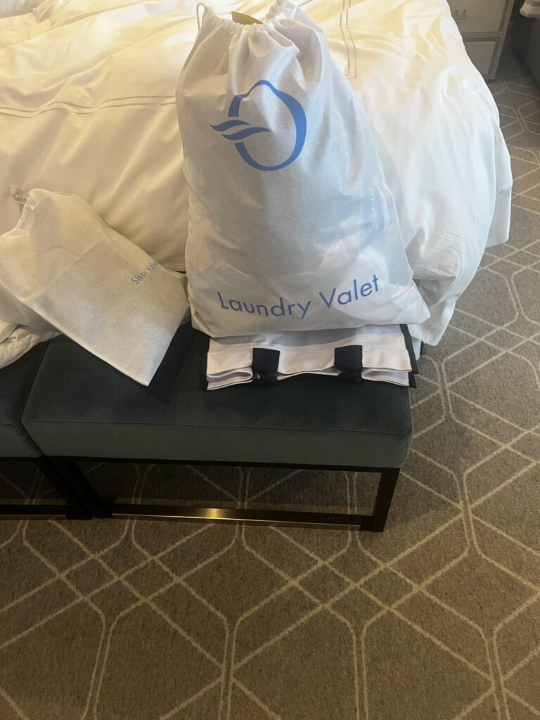 Tuesday March 10th was another busy day and the good thing today was the sun came out and the temperature increased. The morning started off with getting laundry together and Ketan, our butler picked up my shoes and had them shined. As World Cruisers we get free unlimited laundry which is nice. The first day I had my dress shirts, dress pants and sports coats dry cleaned. The laundry is a one-day turnaround so if you turn it in by 9am you will receive it back the next afternoon. My shoes did not even look this nice when I bought them…laughing. The temperature had increased enough that we could eat breakfast outside aft of the ship. Steve Lefort your favorite color with some good breakfast food.