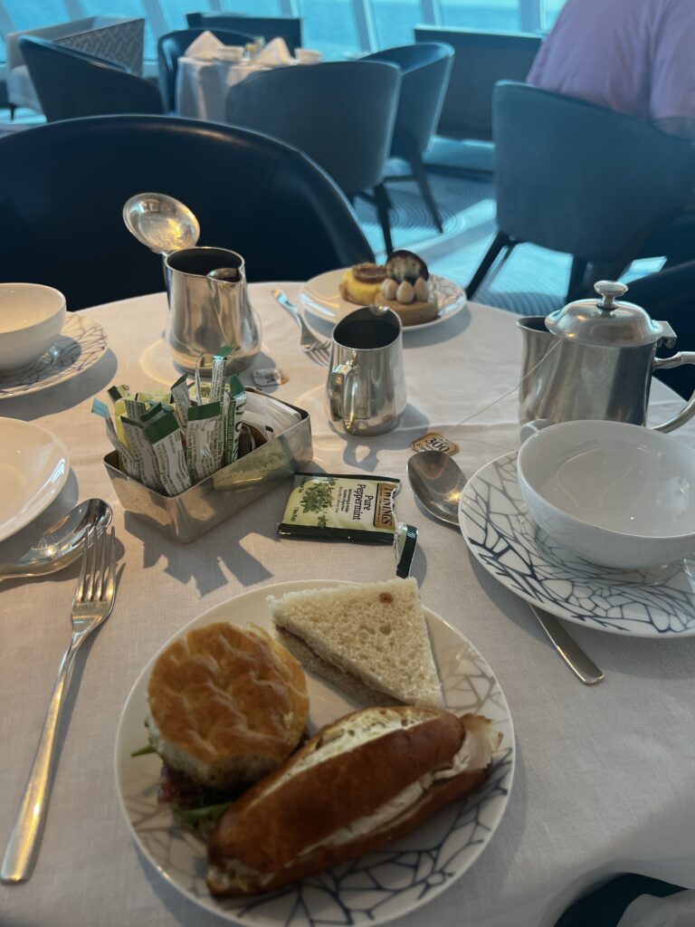In the afternoon we had a few things to occupy our time. First, we went to the next presentation in the Pacific Ocean series. It was an informative talk about Amelia Earhart. This guy doing these presentations is on top of his game and keeps you interested in the subject he is covering for the day. Then, we decided to stroll over to the afternoon tea with the focus of the tea on cheesecake. Before getting to our seats we ran into Hari Heller. She and her husband are from Florida and we had connected via Facebook before the cruise. It is awesome to meet these people in person. We had some tea and sandwiches and couple desserts. Jackie then went to her 4:30pm class Facebook Basics.