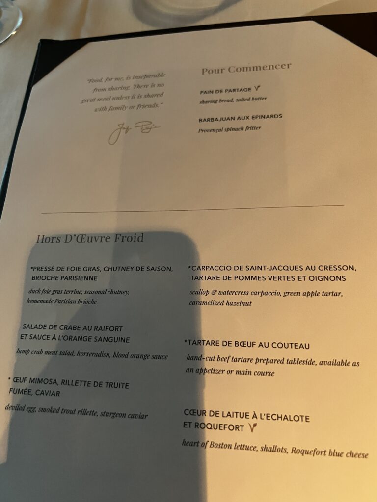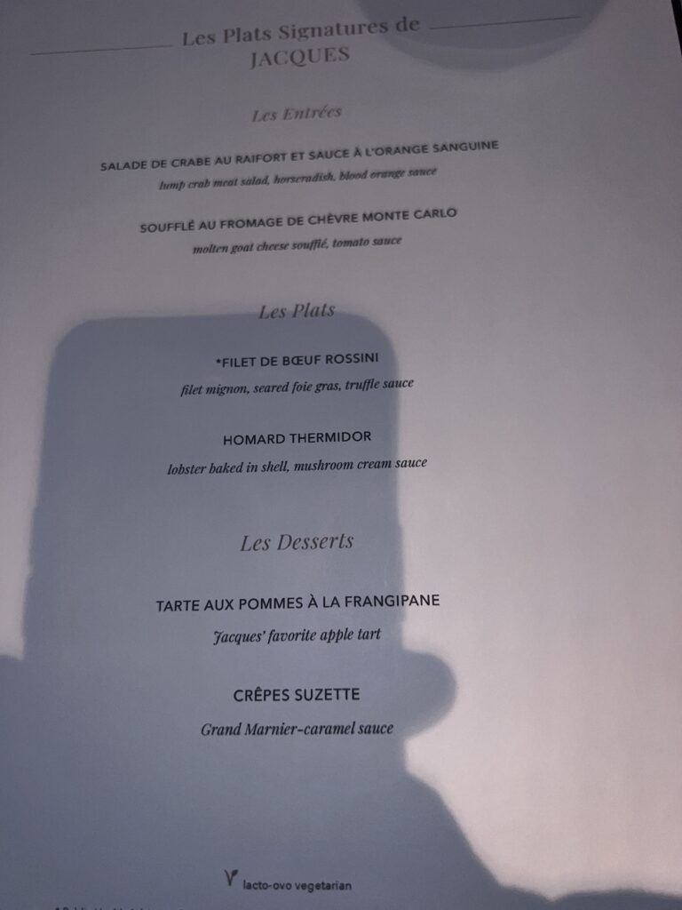 Tonight we ate at Jacques which is a signature, high-end French dining venue inspired by Master Chef Jacques Pépin.